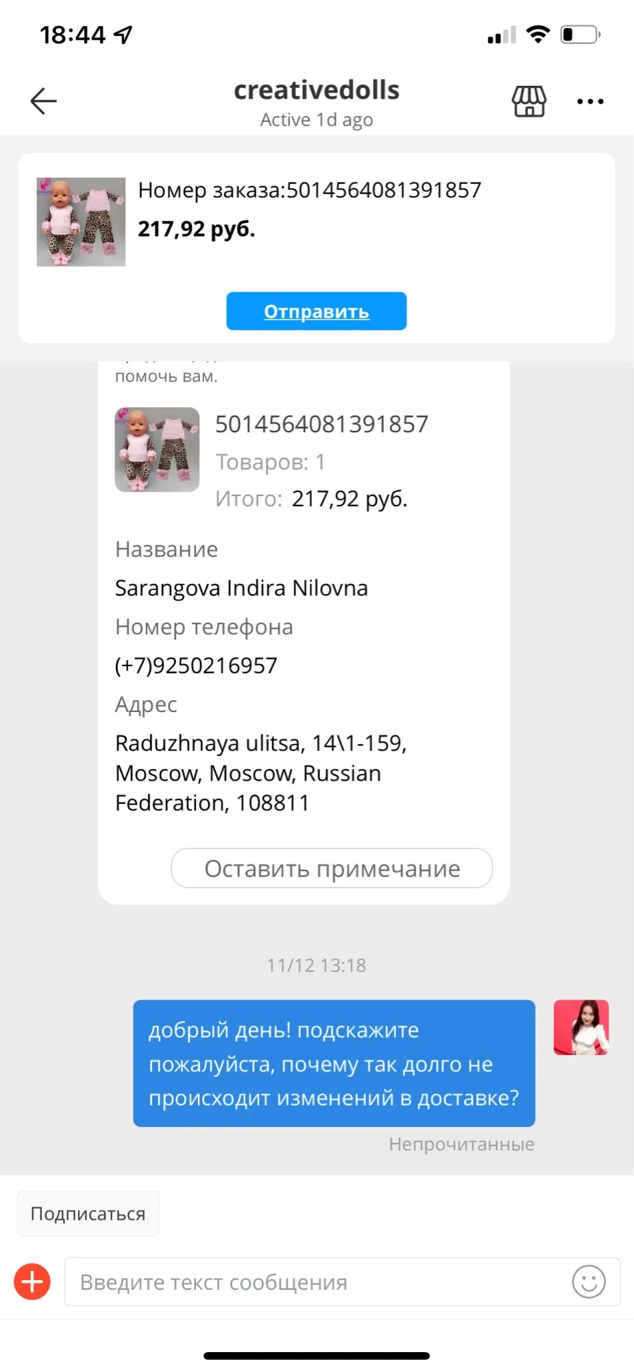 Страна: RU Color: A1 Доставка: Saver Shipping 20.11.2021