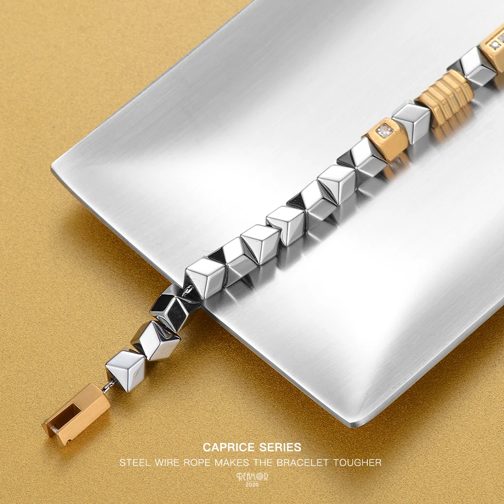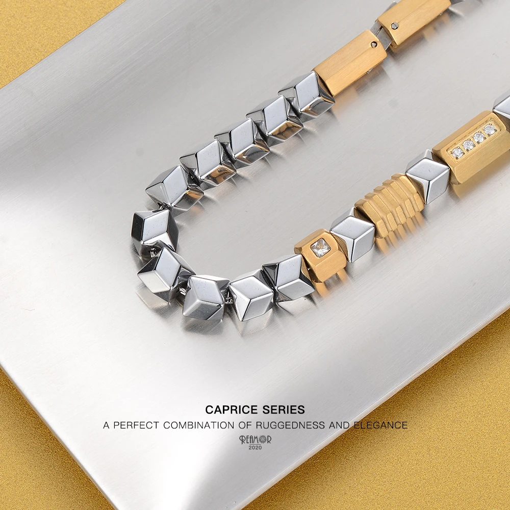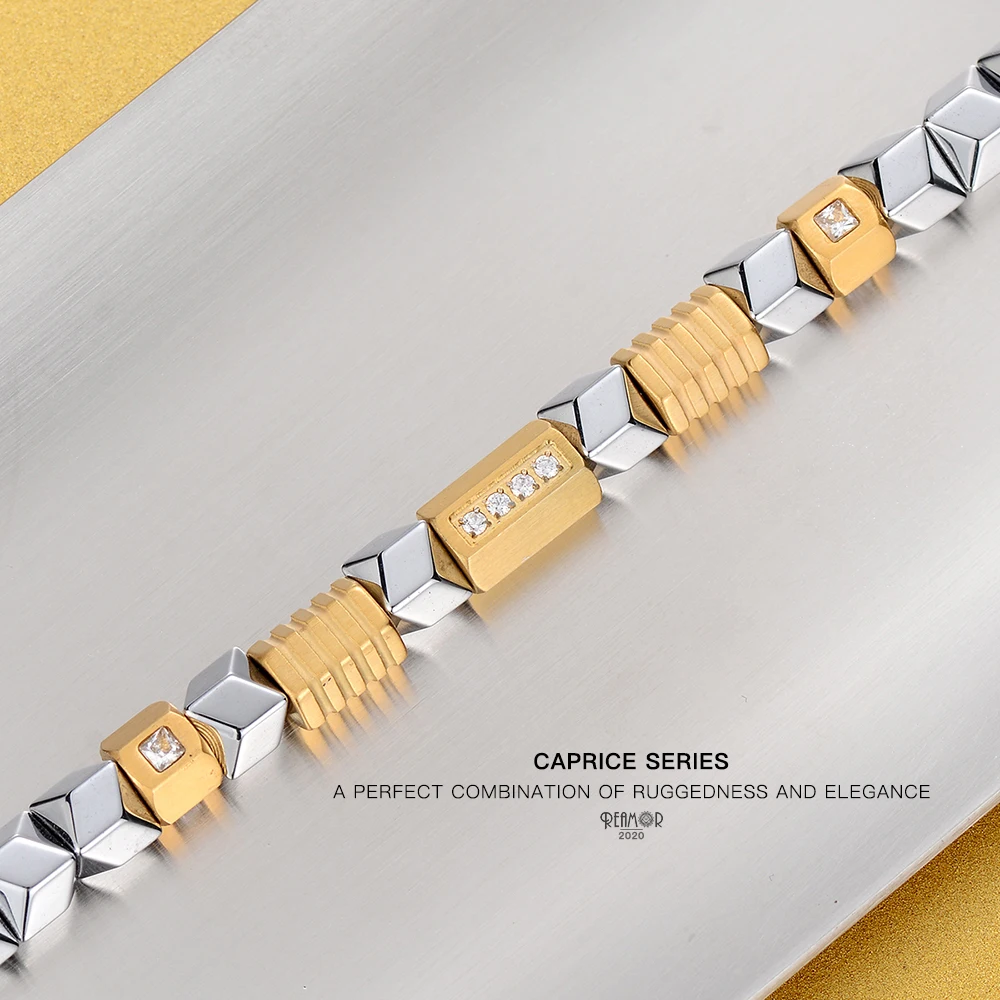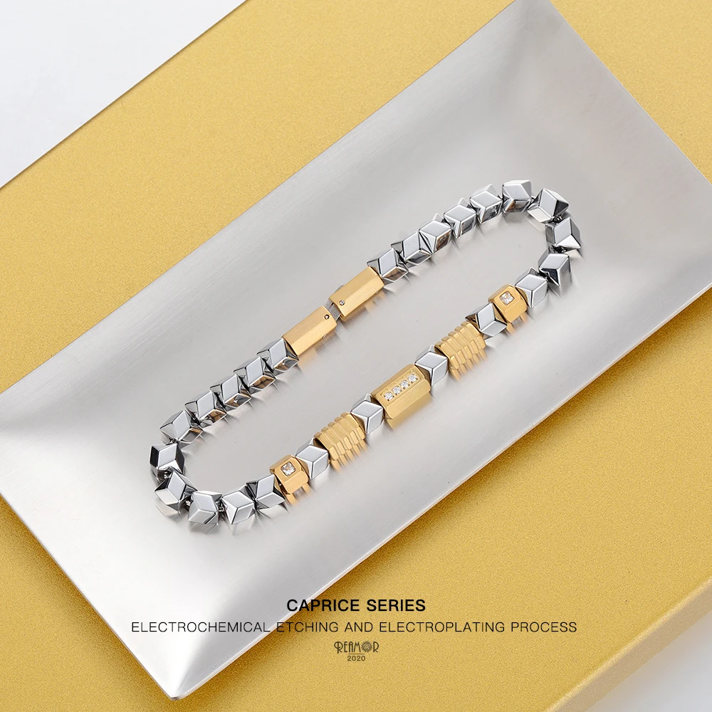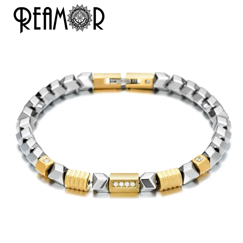 Браслет REAMOR из гематита уникального серебряного цвета, золотые бусины из циркония сделай сам, браслет из нержавеющей стали, мужские ювелирные изделия ручной работы