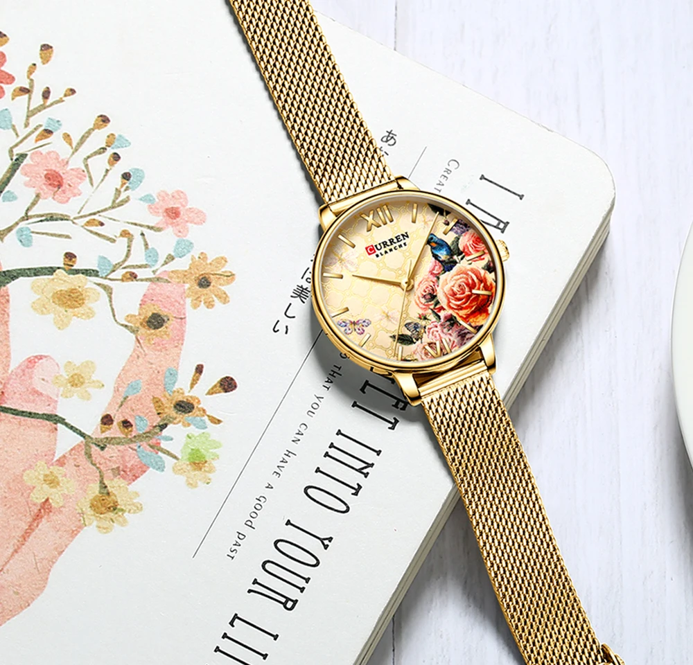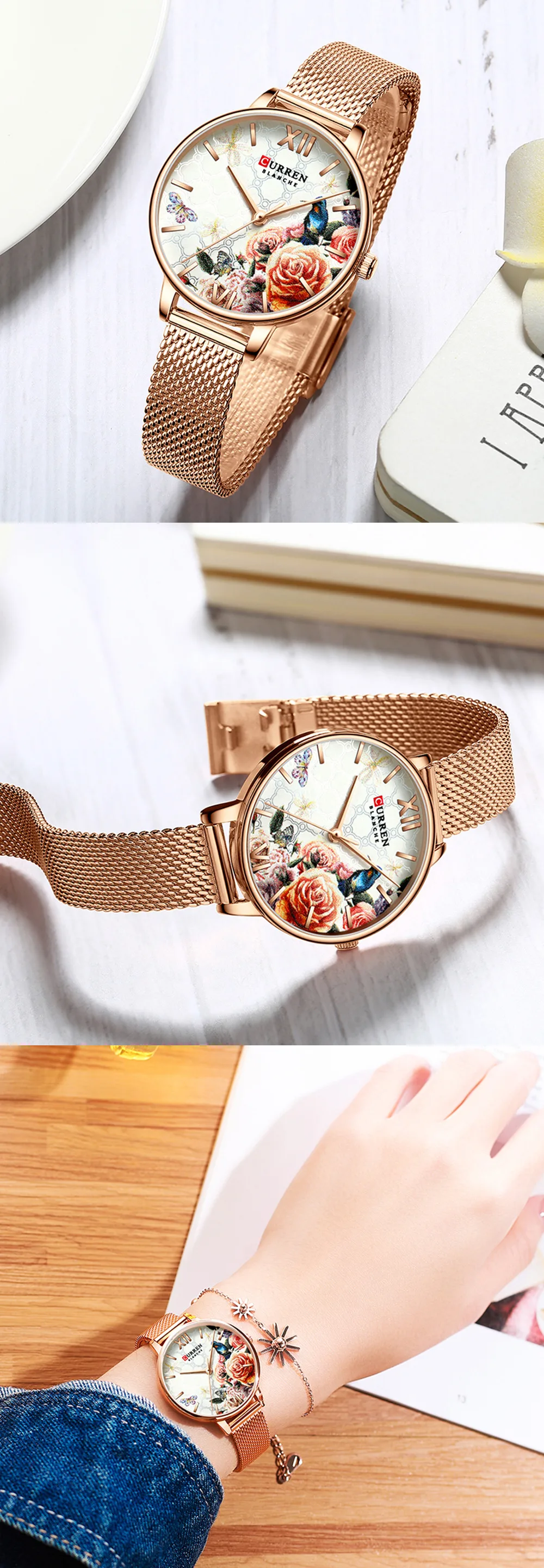 CURREN Модные Повседневные кварцевые часы, креативные элегантные женские часы, классические женские наручные часы, японские часы с механизмом для девушек, золотые