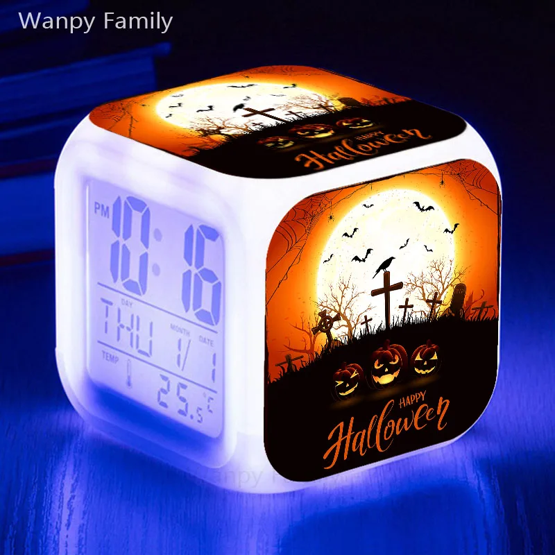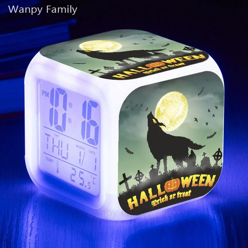 Хэллоуин светодиодный Будильник 7 цветов Изменение прикроватные нас...