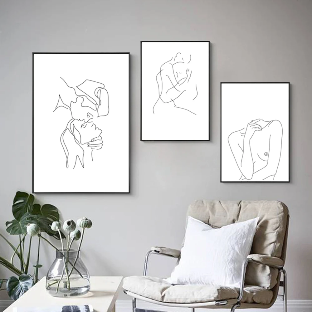 Абстрактная Женская линия Рисование Картина Декор для дома искусство на стене рисунок на теле ручные постеры и печать для гостиной