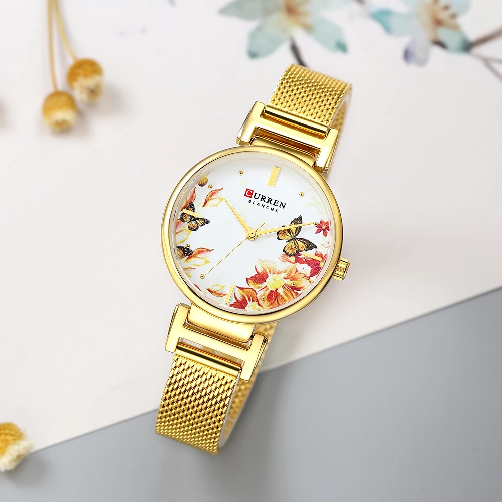 Новые CURREN часы из нержавеющей стали женские часы с красивым цветочным дизайном