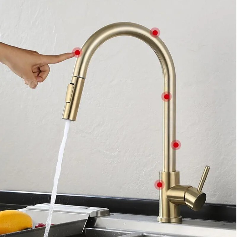 Смеситель кухонный с выдвижным датчиком, матовый чувствительный к золотистому кран с сенсорным управлением, черный