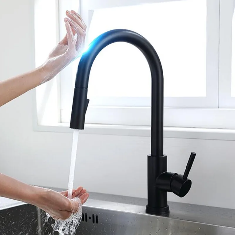 Вытяжной сенсор, кухонный кран, матовый, золотой, чувствительный, с сенсорным управлением, смеситель для кухни, сенсорный, черный сенсор, кухонный смеситель