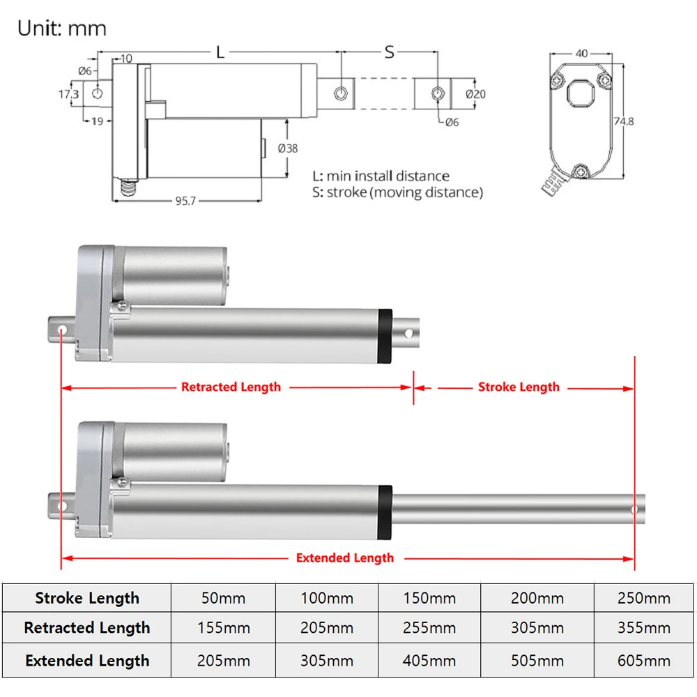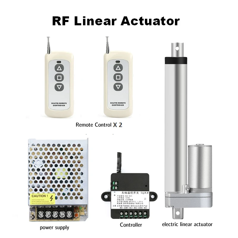 Линейный привод 12 В + 2 шт. Радиочастотный пульт дистанционного управления + источник питания 50 мм 100 мм 150 мм 200 мм ход 1000N металлический Редуктор Электрический Линейный мотор