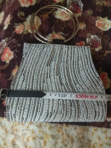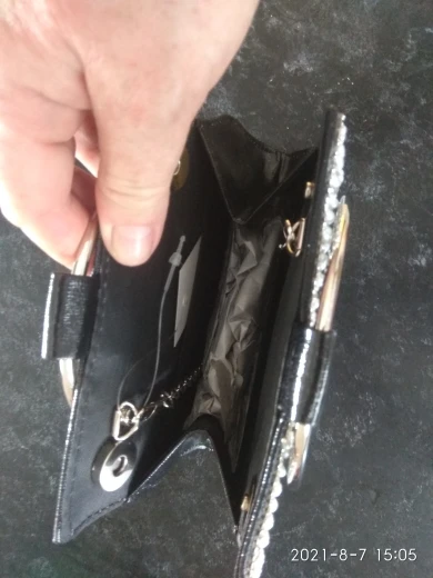 Продавец отправил заказ почти сразу. Сумочка пришла за две недели. Сумочка маленькая, упакована очень хорошо, три пакета и картонка. Максимальная ширина внизу 19 см. Все камешки и жемчуг на месте, наклеены крепко. Надеюсь, не отвалятся. Застёгивается вообще насмерть! Очень крепкая застёжка. Взяла чёрный вариант, к черной одежде. Размер праздничный - положить телефон, кошелёк и косметику. Продавцу спасибо, рекомендую!