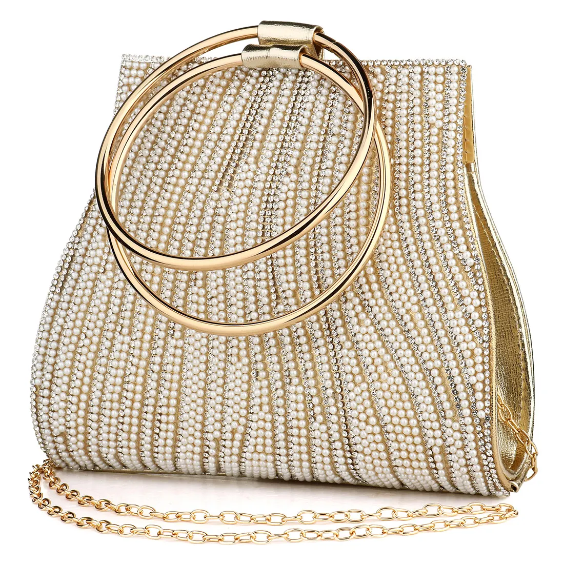 Сумка-клатч женская из искусственной кожи, с жемчужными Стразы