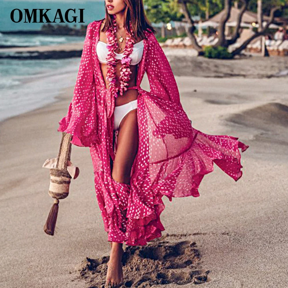 OMKAGI, сексуальный, накидка, пляжный, Одноцветный, бикини, купальник, для женщин, для плавания, женский купальник, Цветочный, с оборками, платье