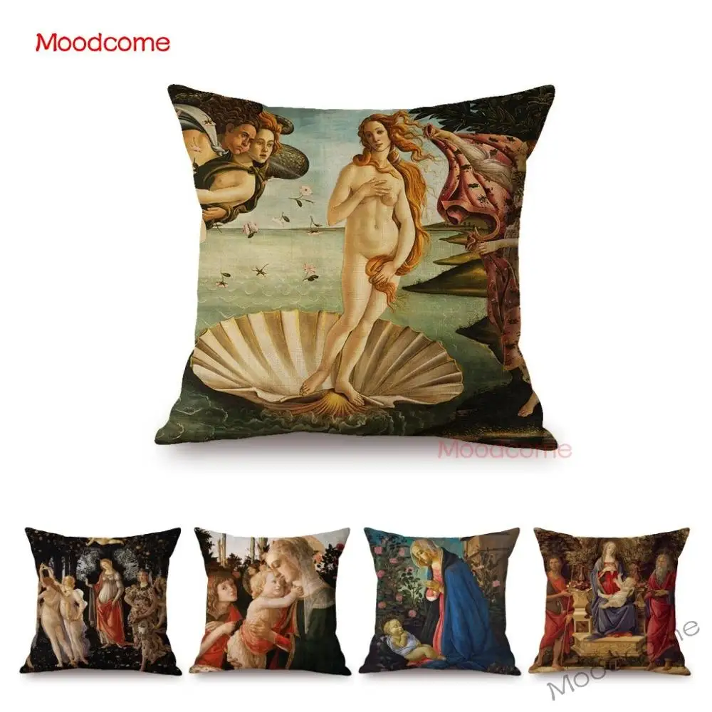 Чехол для дивана Sandro Botticelli, декоративная подушка из хлопка и льна с изображением героев мультфильма День рождения Венеры, всемирно известной картины маслом