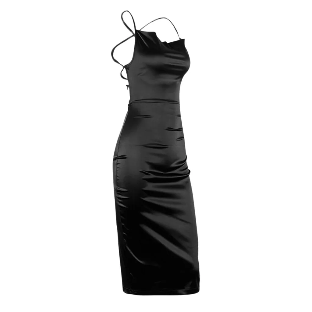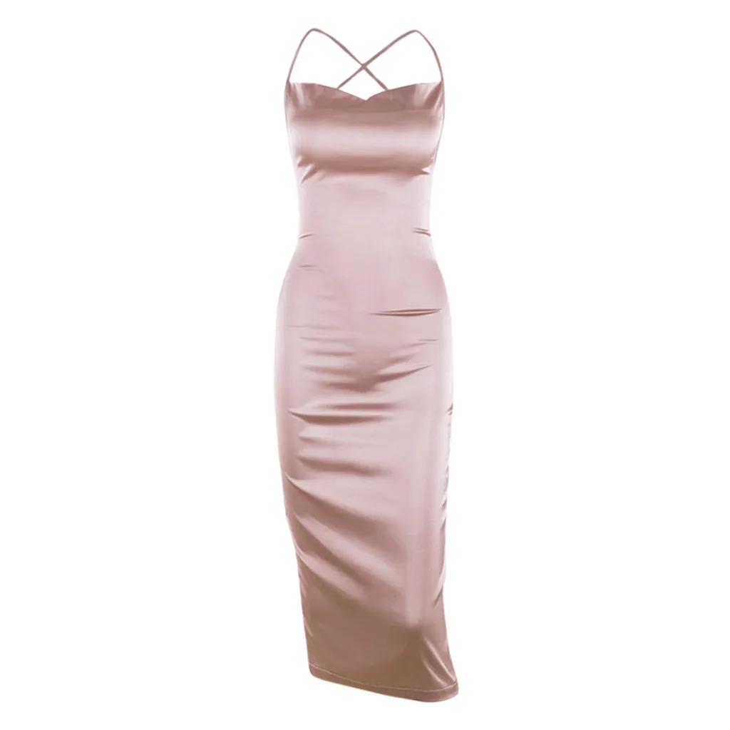 Неоновое атласное платье на шнуровке, женское длинное Обтягивающее Платье-миди с открытой спиной, элегантная вечерняя пикантная Клубная одежда, летнее платье 2020 Vestidos # J30