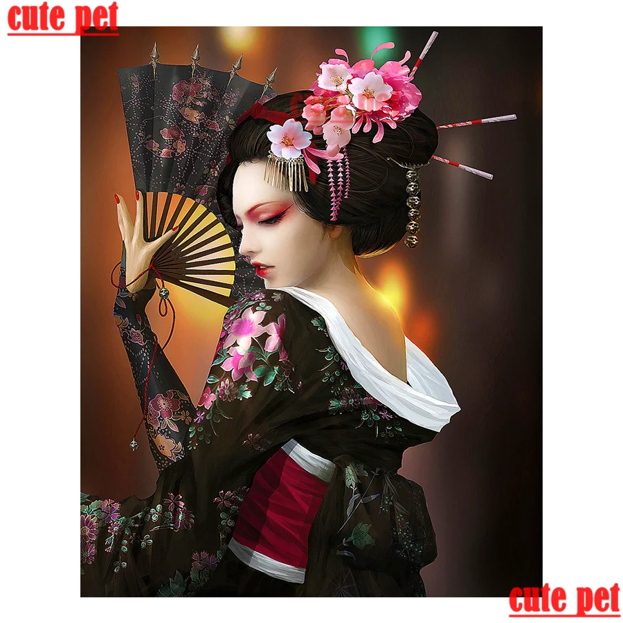 Картина 5D, украшение, японская гейша, сделай сам, алмазная живопись, настенная живопись, Набор для вышивки крестиком, мозаичный узор, 3d обои