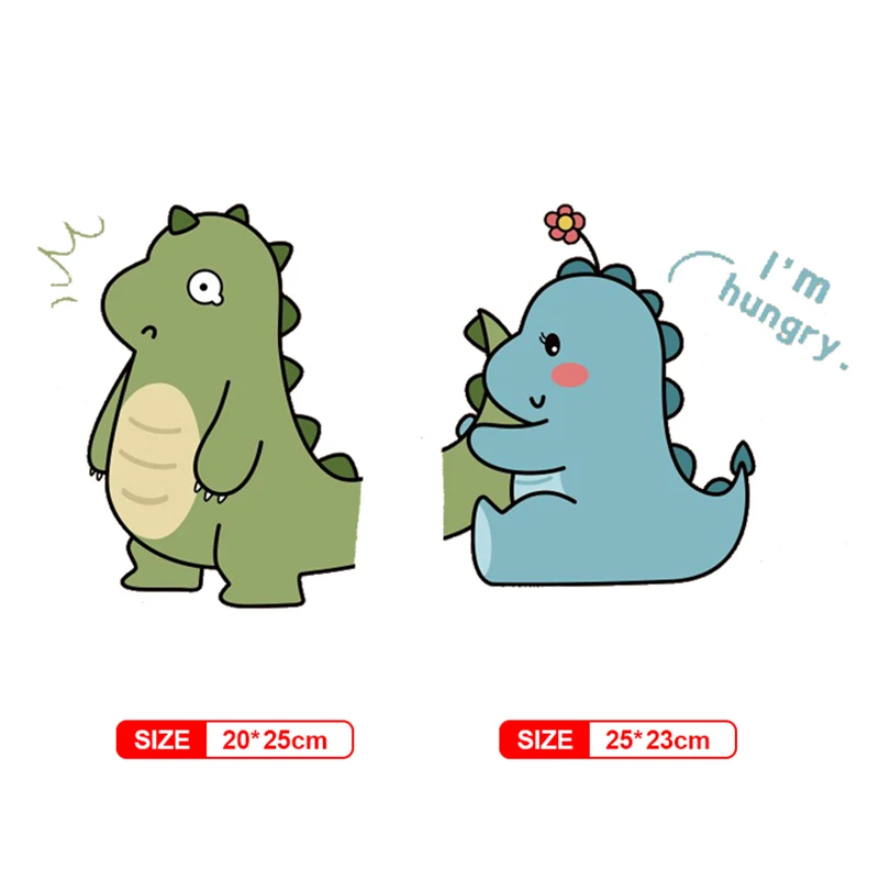 Пара виниловых наклеек с изображением динозавра из мультфильма, Милый Железный стикер для переноса одежды, аппликация, моющийся значок, Декор, сделай сам