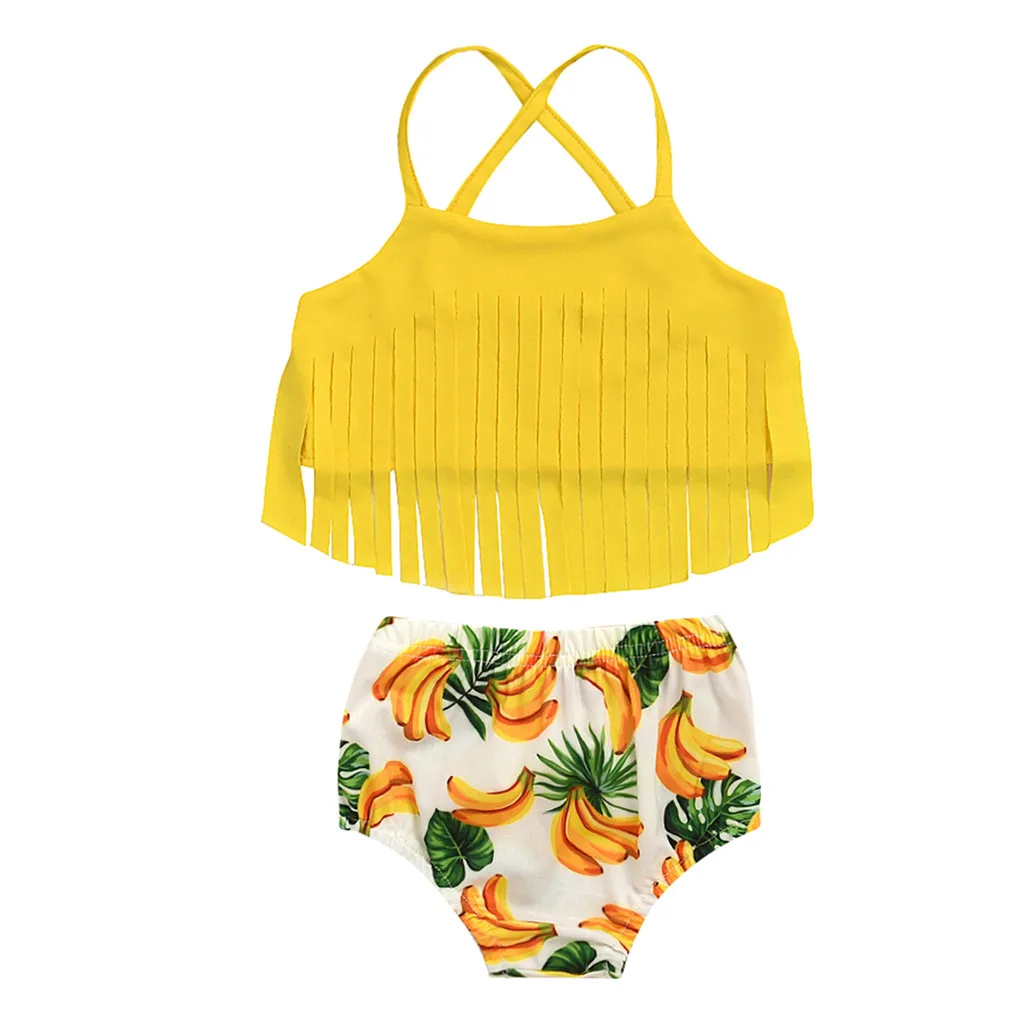Летний Пляжный комплект бикини для девочек, с кисточками и цветочным принтом, на бретелях, # p4, плавательный костюм без рукавов