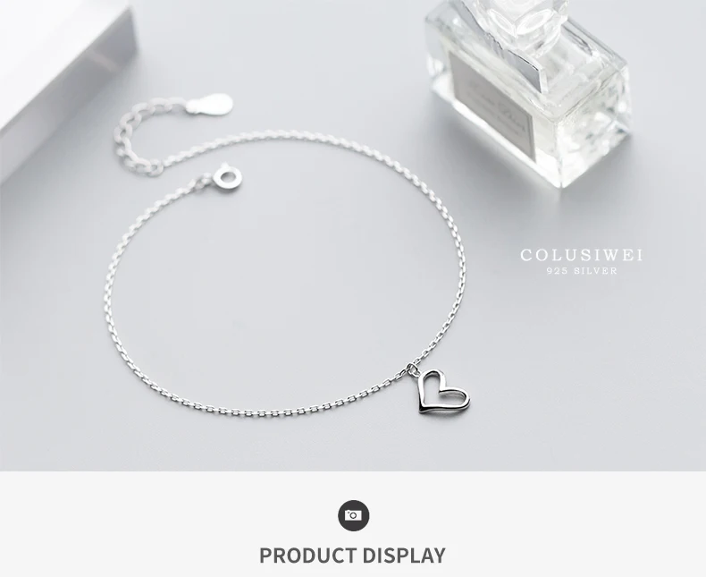 Женский анклет на ногу Colusiwei, амулет из настоящего серебра 925 пробы с милым сердцем для ног, аксессуар на лодыжку