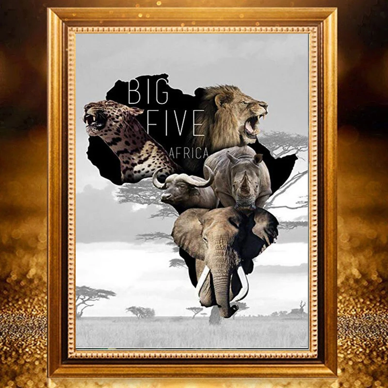 Алмазная картина 5D полностью квадратная/Круглая Большая пять Африканский слон леопард лев носорог вышивка крестиком кристалл подарок