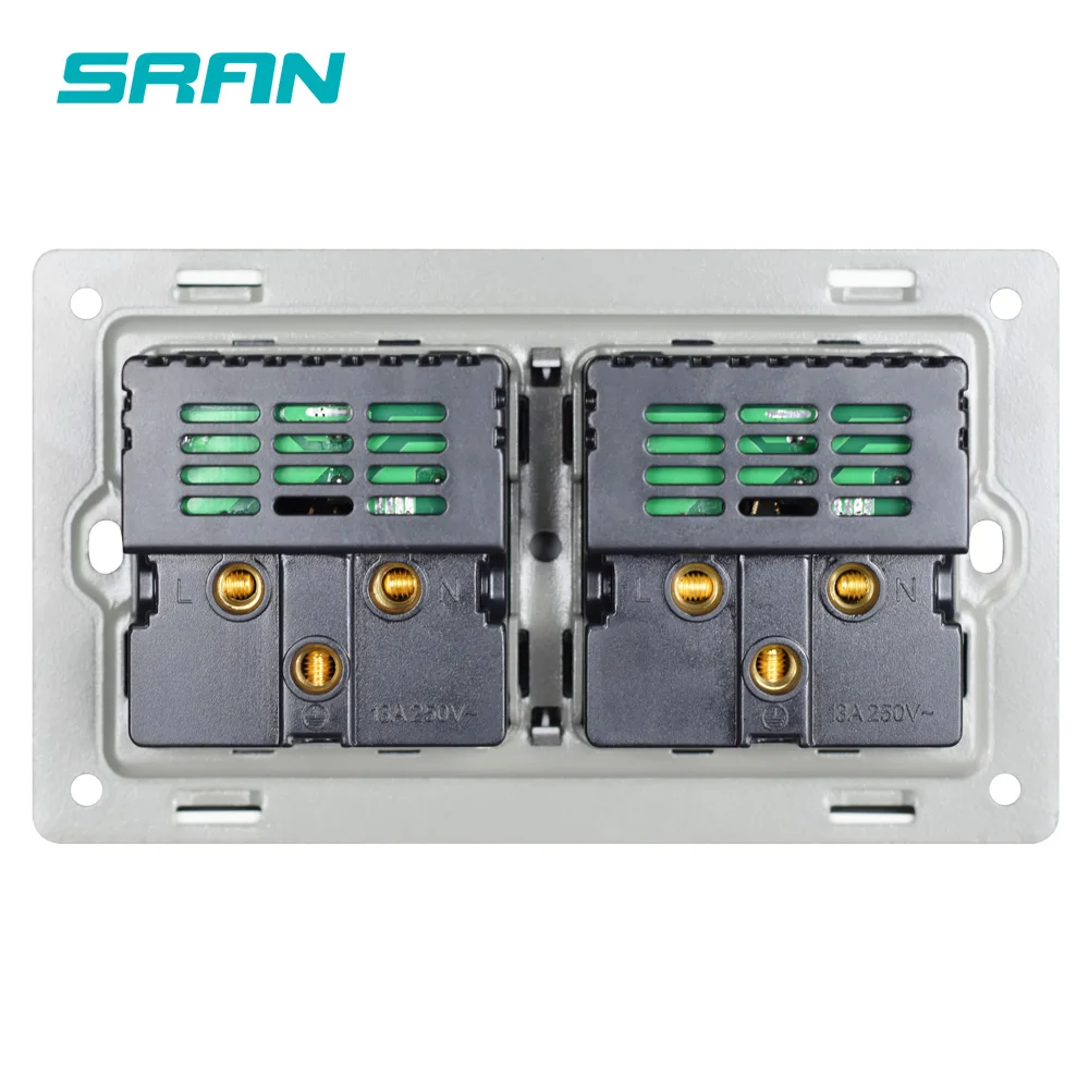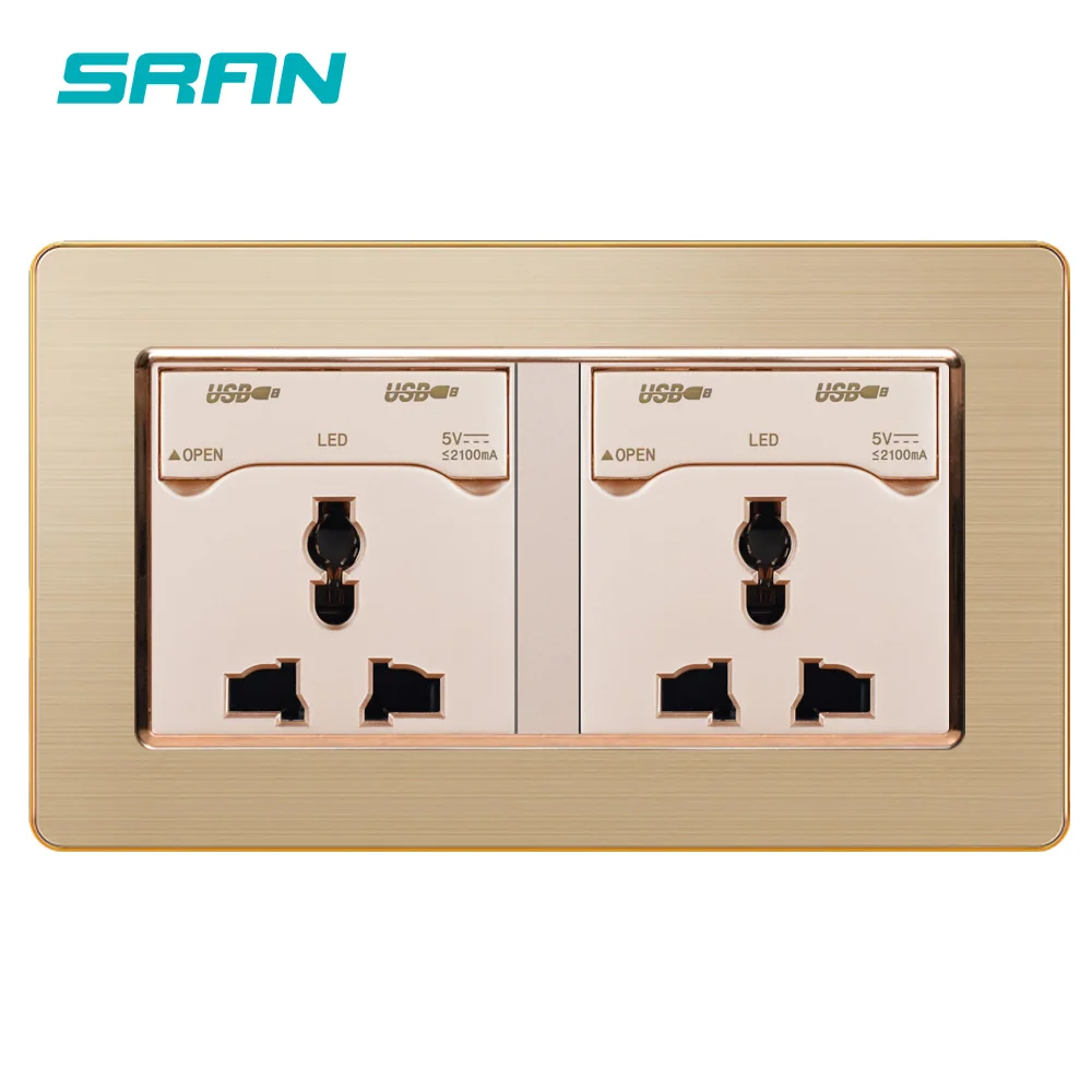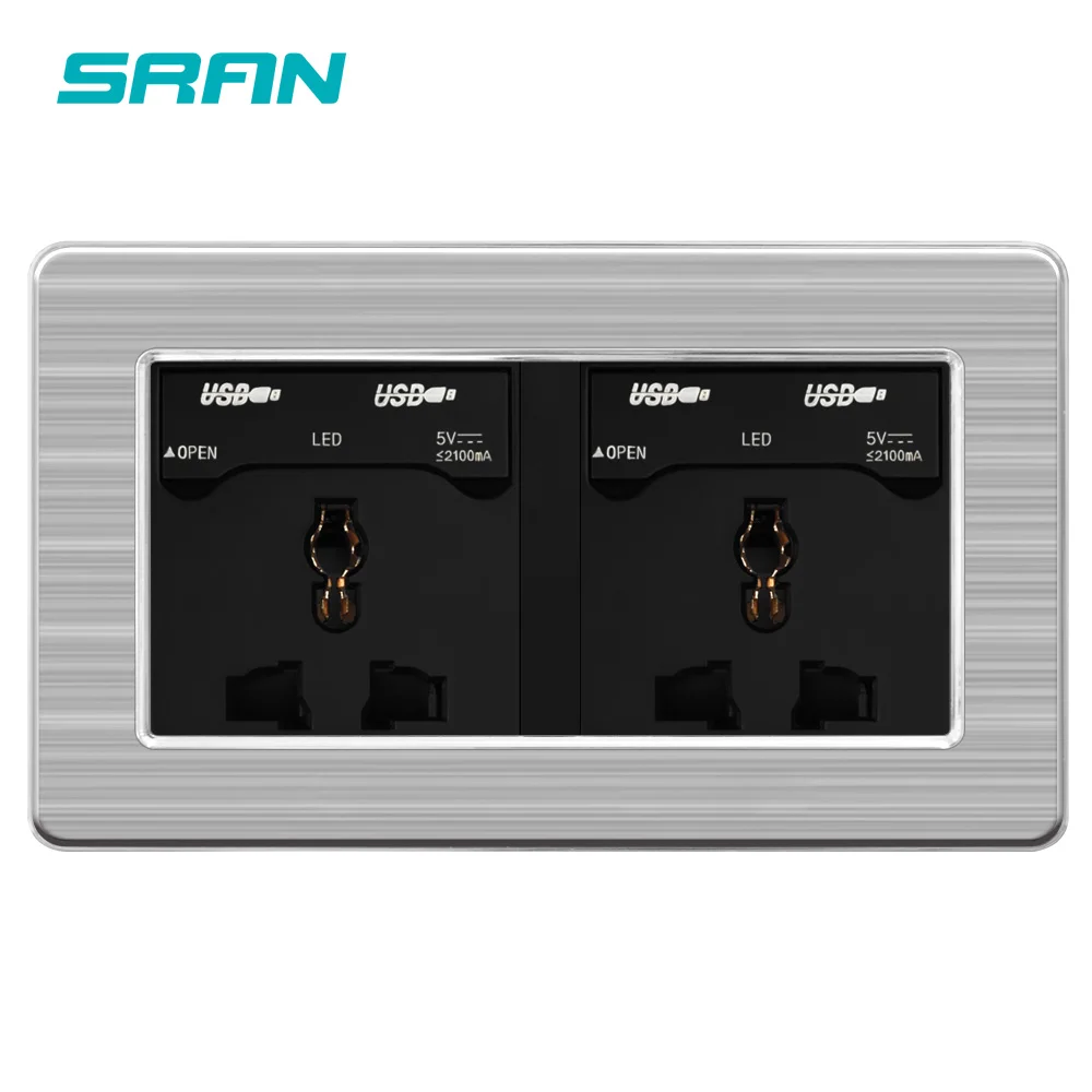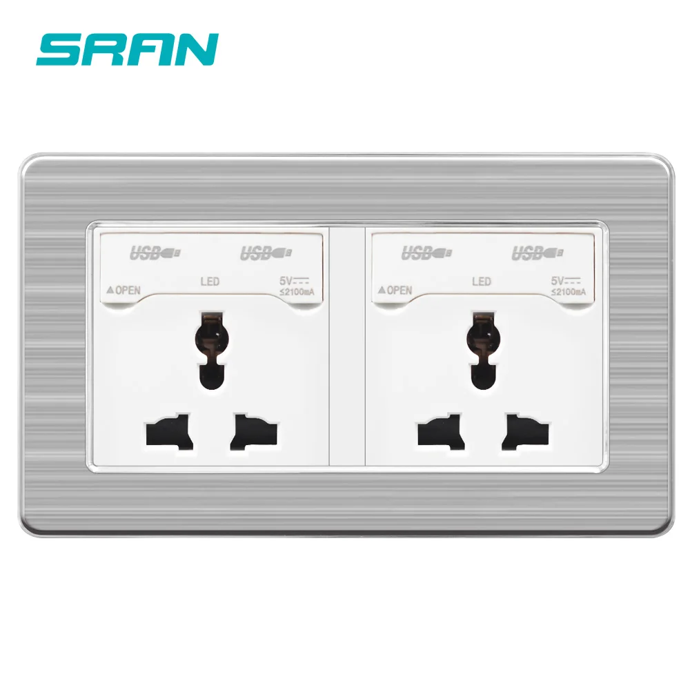 SRAN универсальное настенное Мощность розетка, розетка с usb, двойной 2.1A адаптер с 4 usb портами для зарядки электроники с крышкой 2Gang 13A нержавеющая сталь панель 146 мм * 86 мм