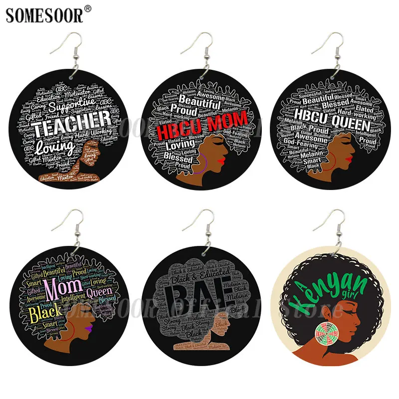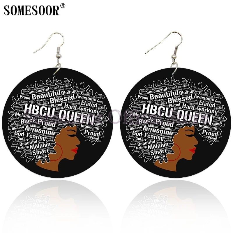 Деревянные серьги-подвески SOMESOOR, с изображением меланина, женск...