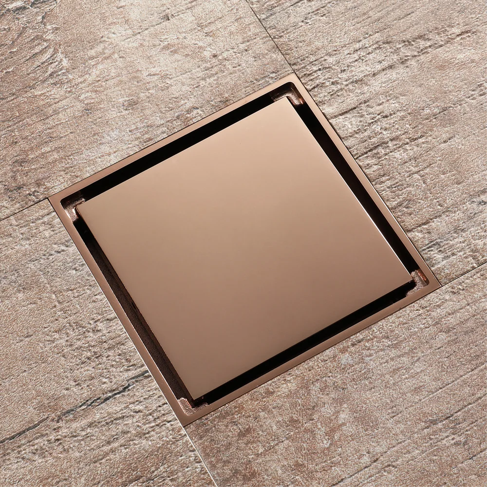 Слив для пола 10 см из розового золота, латунный фильтр для слива отходов, крышка для дома, кухни, ванной, туалета, белья, сада, улицы