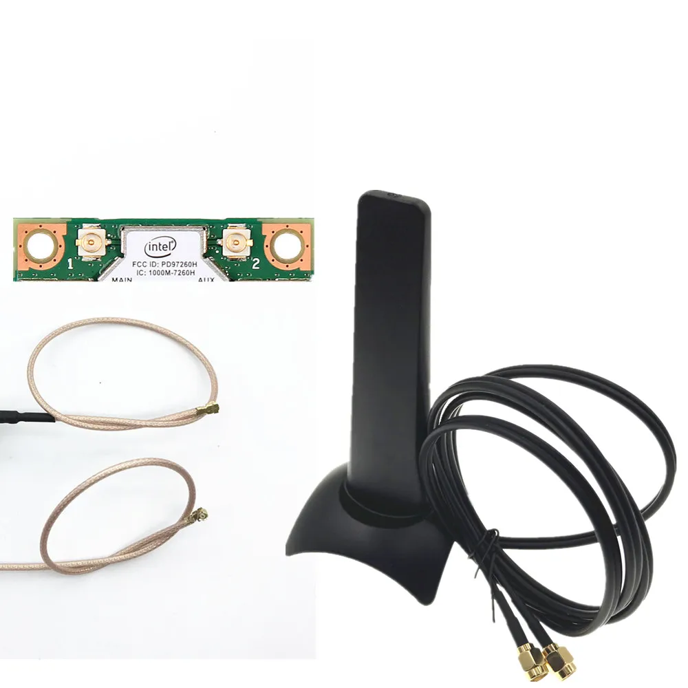 Поддержка сети: 802.11b, 802,11g,802.11n,802.11ac Разъем: такой же, как на изображении в списке Гибкая антенна Wi-Fi Посылка включает в себя: 1 x Антенна 2 х кабель В комплект не входит карта NGFF, показанная на картинке!