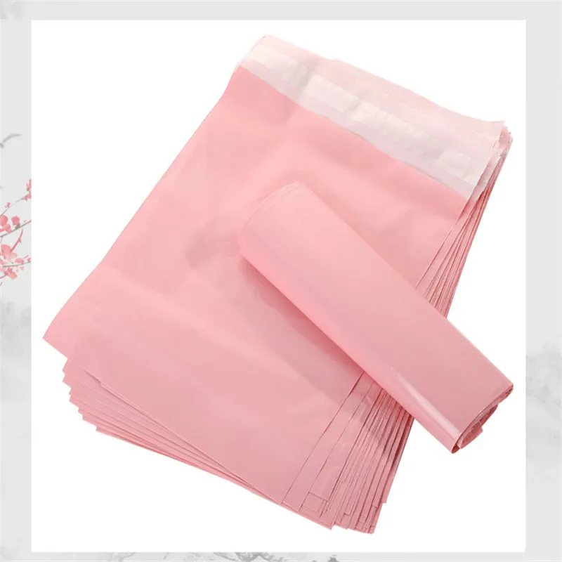 50 шт.лот, розовые полупрозрачные курьерские Упаковочные пакеты, плотные водонепроницаемые мешки, полиэтиленовые конверты