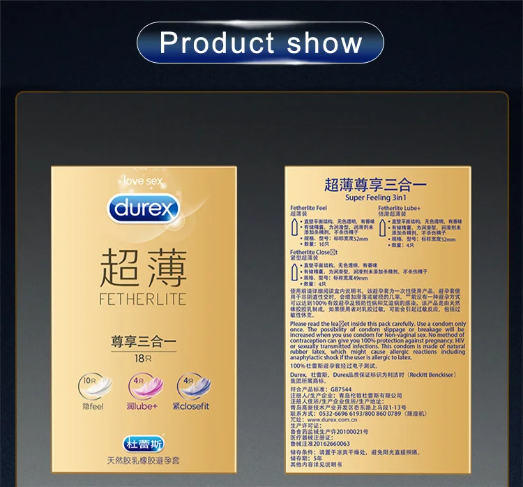 Durex Ультра тонкий 18 шт. удовольствие 3in1 презервативы плотно пр...