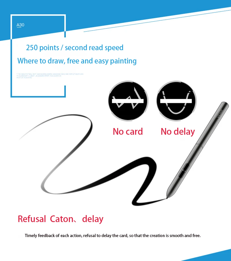 А, включается ли светильник индикатора состояния планшета, когда стилус находится в контакте с рабочей областью? Если да, удалите драйвер A30 и перезагрузите его, затем подключите планшет к компьютеру и проверьте стилус. Если курсор реагирует на ввод ручки, аппаратное обеспечение планшета является функциональным. Перейдите на наш официальный веб-сайт www.veikk.com скачать новейший драйвер и переустановить.