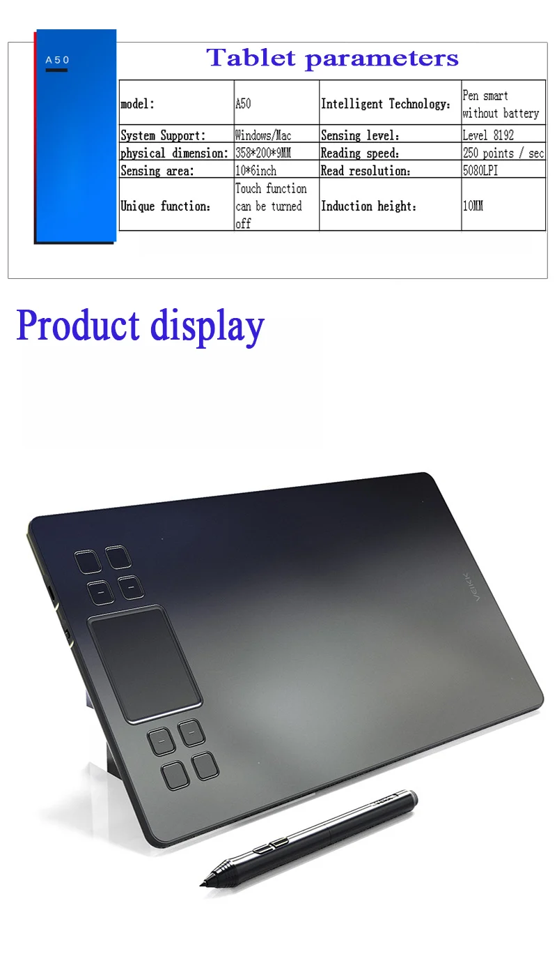 B, или откройте интерфейс драйвера, верхний левый угол показывает A50, указав, что планшет был успешно установлен к драйверу, вы можете начать использовать планшет сейчас.
