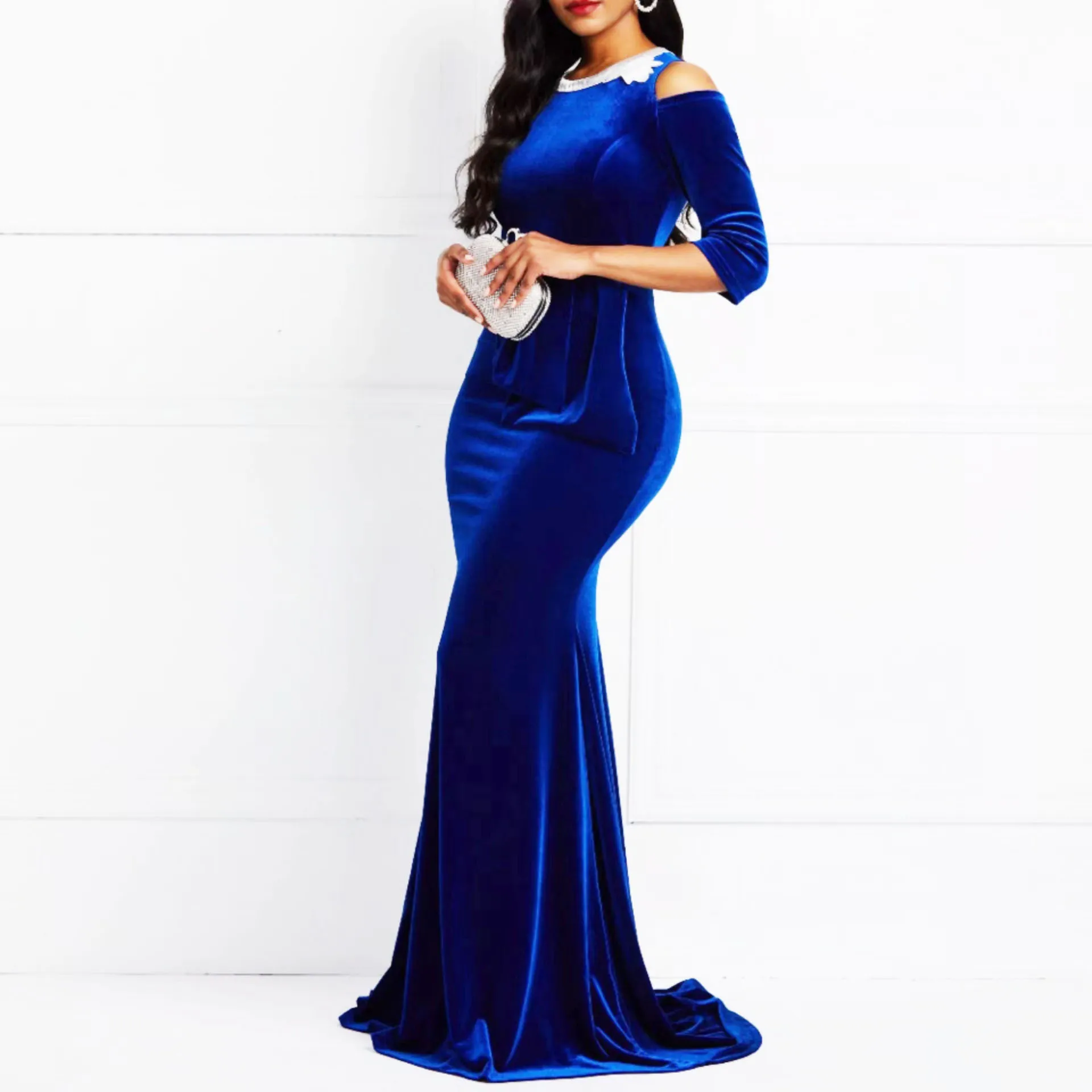 Вечернее платье для вечеринок, женское элегантное Сексуальное Платье макси с открытыми плечами, Бархатное облегающее платье-русалка в ретро стиле