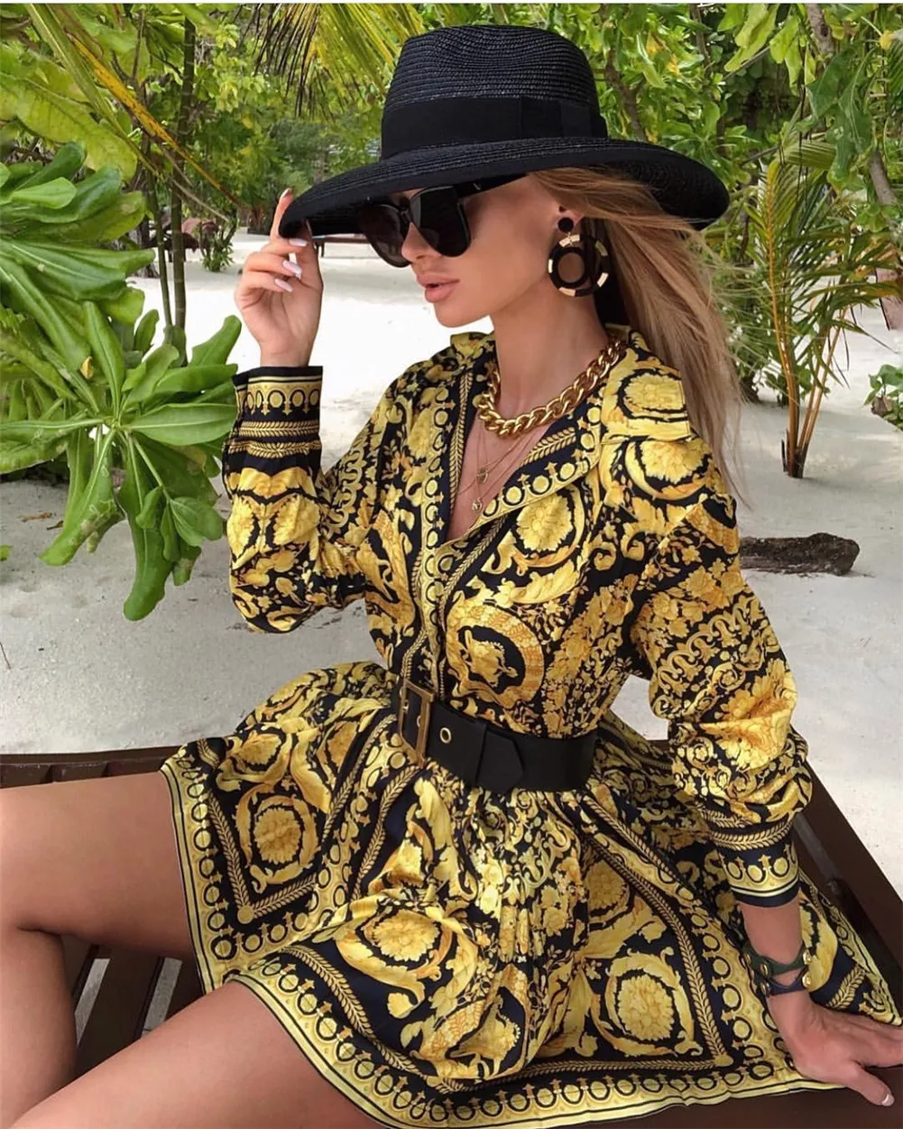 Женское винтажное платье в стиле бохо, свободное праздничное платье-трапеция с длинным рукавом и V-образным вырезом, Короткие Свободные мини-платья, Лидер продаж, весна 2020
