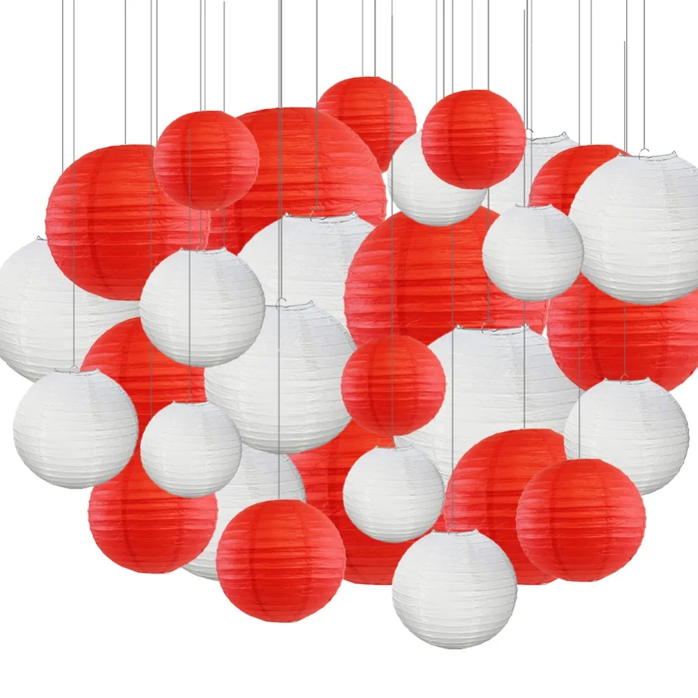Красно-белый Китайский бумажный фонарь, 30 шт.компл., 6 "8" 10 "12"