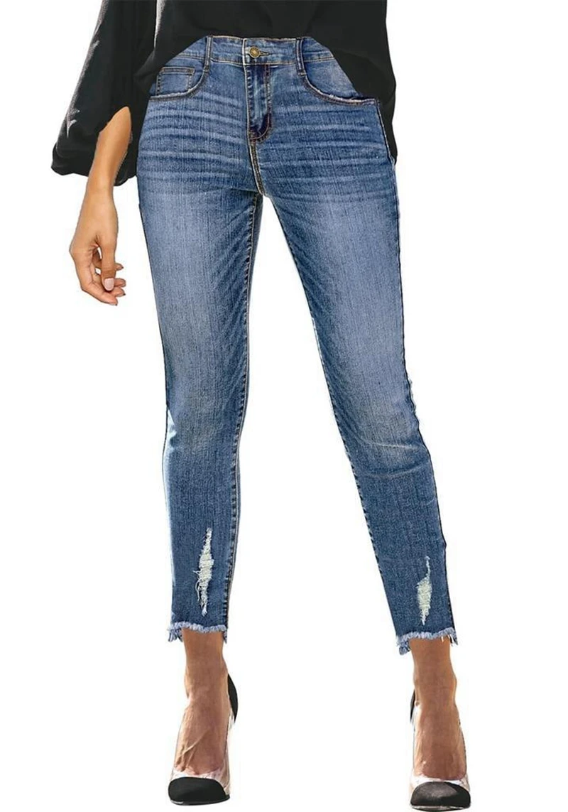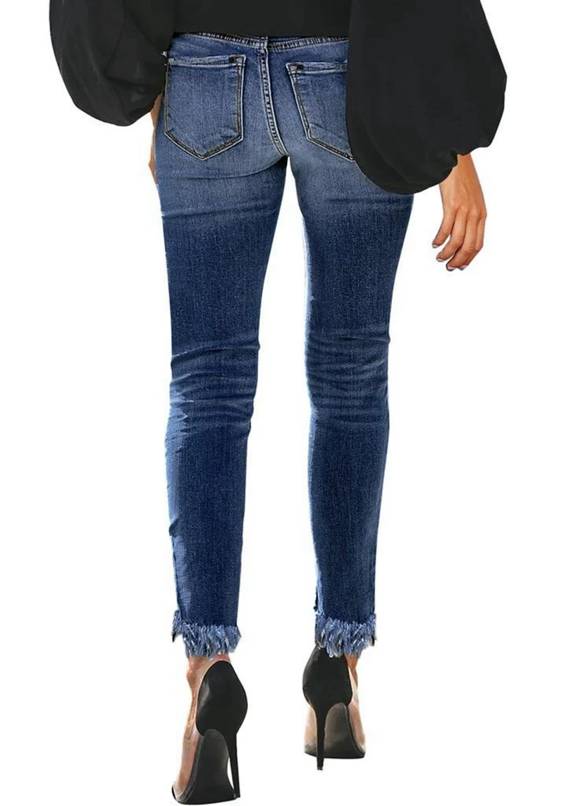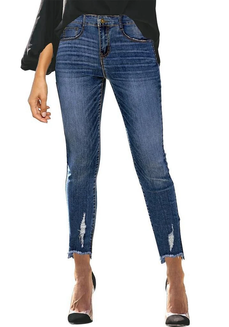 Женские винтажные рваные джинсы, обтягивающие джинсы-карандаш со средней талией, с кисточками, синего цвета, весна 2020