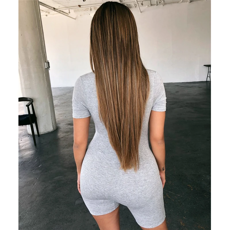 Женское облегающее боди, комбинезон с коротким рукавом, сексуальный облегающий однотонный комбинезон на молнии, 2020, женский эластичный Модный повседневный спортивный боди