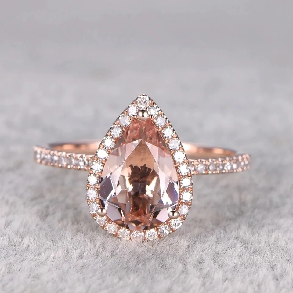 Модные романтичные обручальные кольца в форме капли с кристаллами, женские элегантные роскошные розовые стразы, свадебные фотокольца, бижутерия