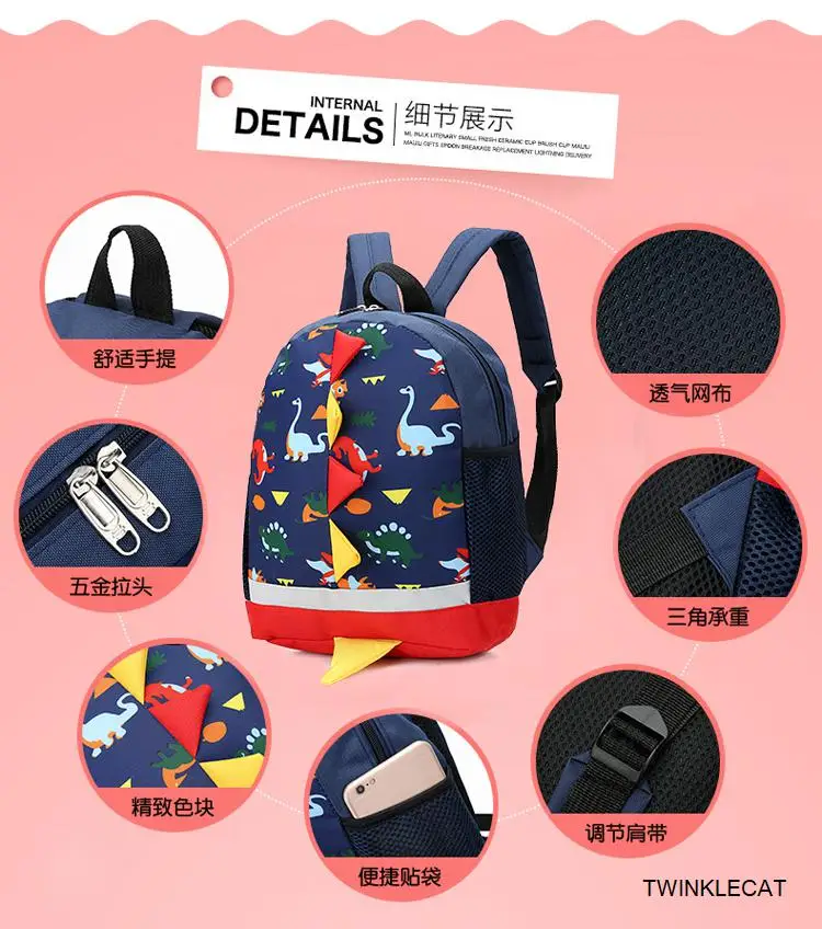 Маленький милый школьный рюкзак с мультипликационным принтом диноза...