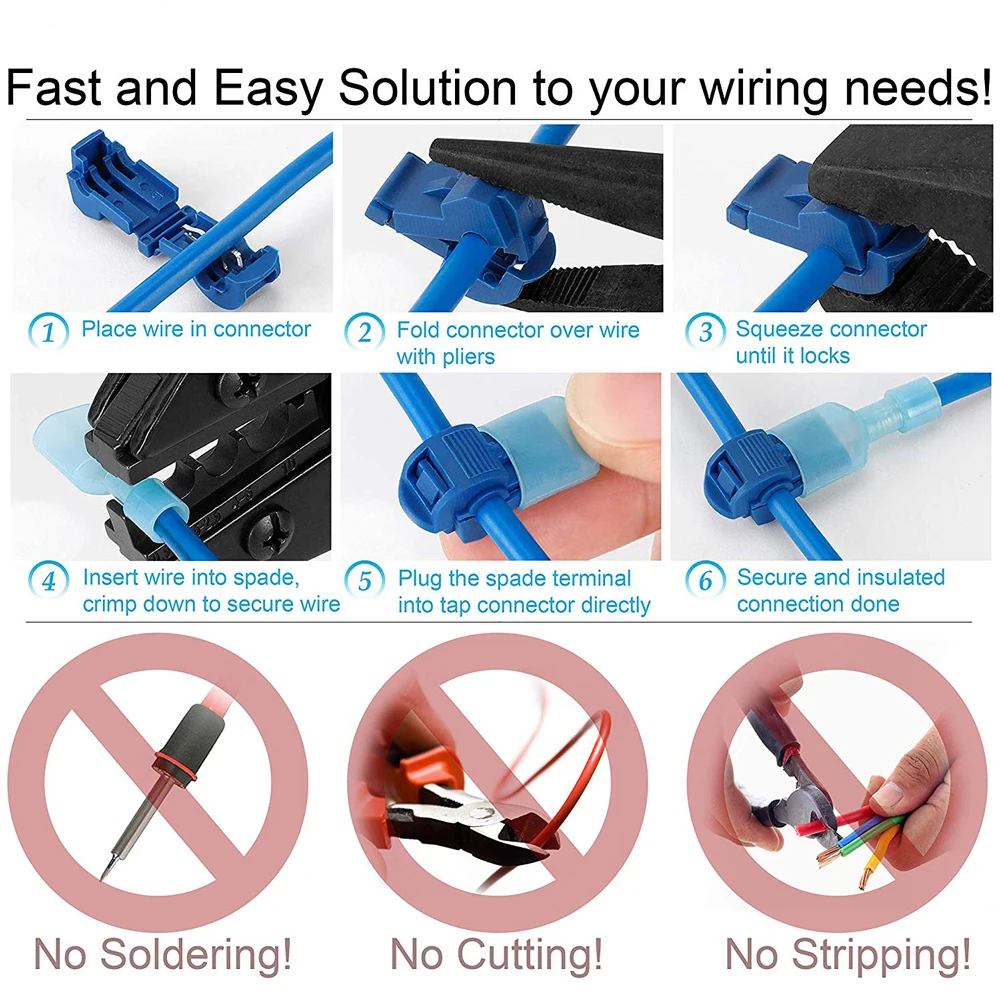 Соединители для проводов T-Tap, 2040 шт., быстроразъемные соединители для электрических кабелей, защелкивающиеся клеммы фиксатор соединения, набор обжимных ручных инструментов
