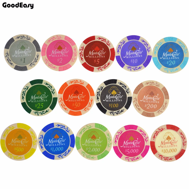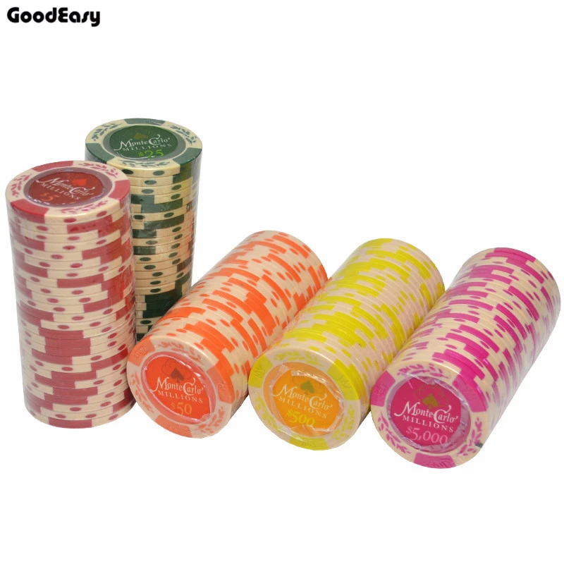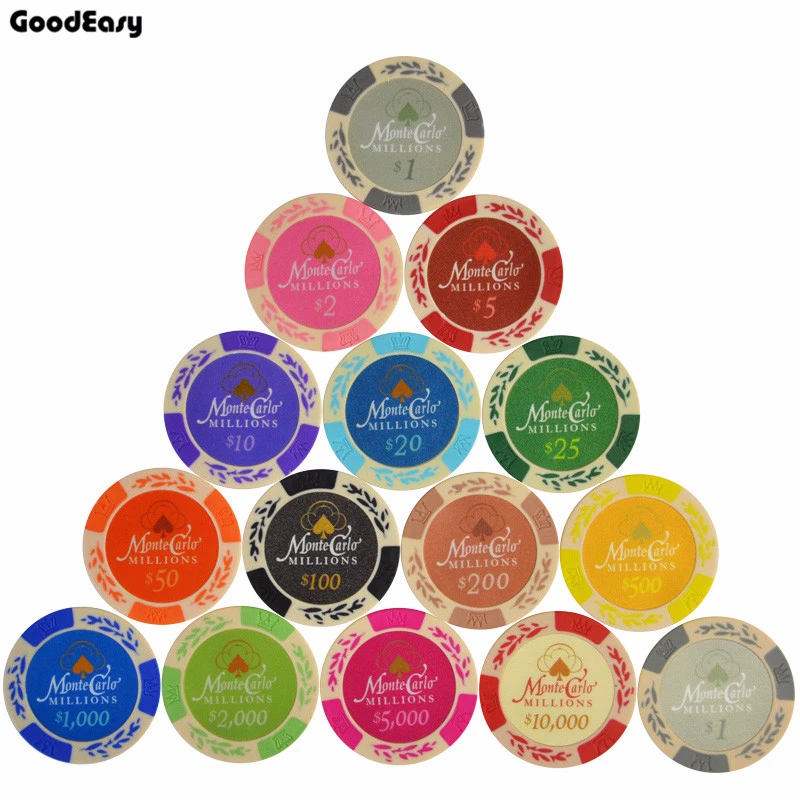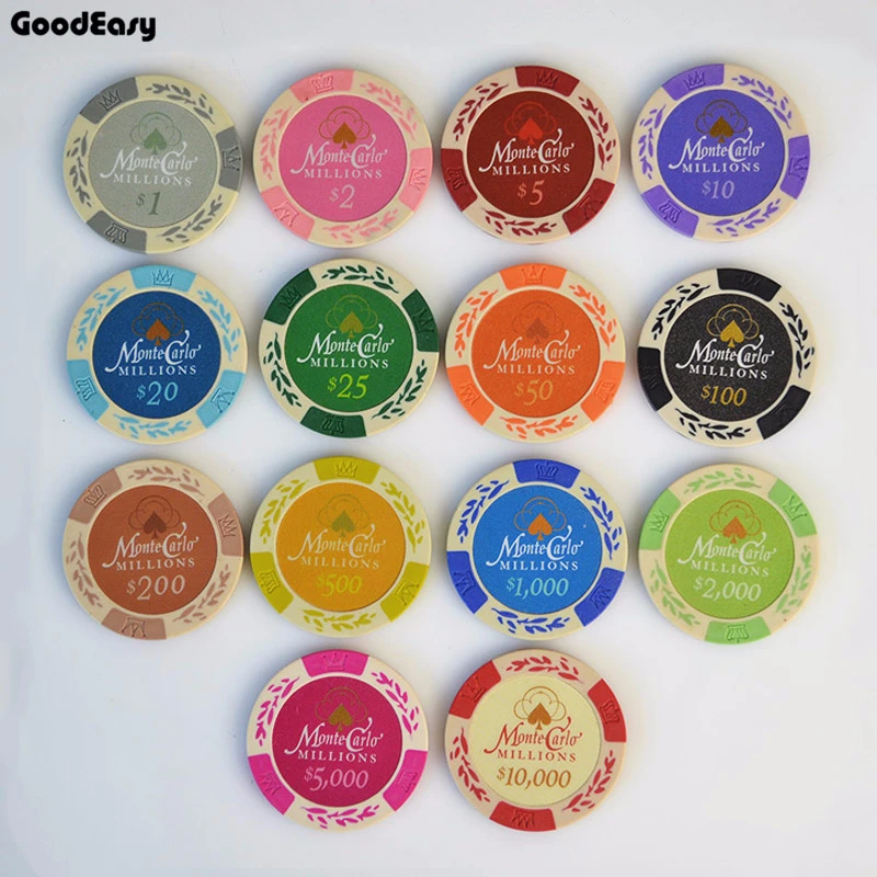 Хит Монте-Карло фишки для покера пшеницы 5 шт.компл. 14 г набор глина + внутренние металлические монеты техасский холдем покер Caisno Royal Poker Club Game