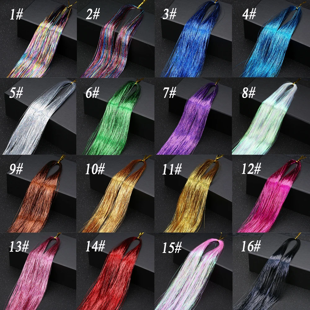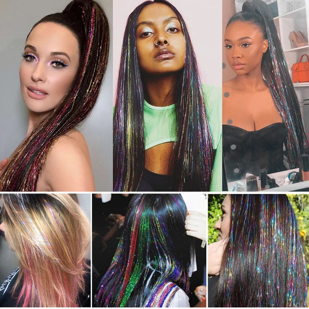 Головной убор для девочек с блестками, цветные радужные пряди для наращивания волос с лазером, блестки для волос, полоски с блестками для вечеринок, блестящие украшения