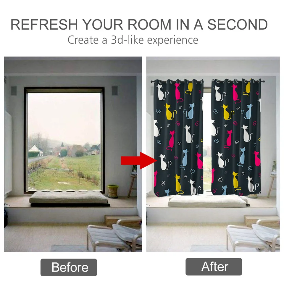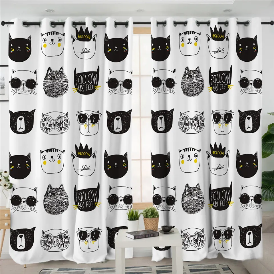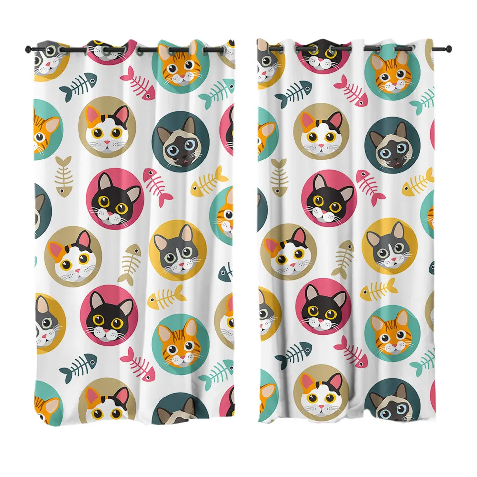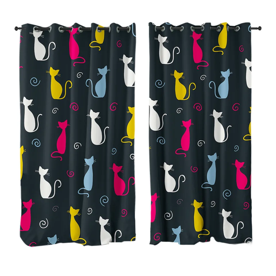 Занавески BeddingOutlet с милыми котами, цветные затемняющие шторы для детской спальни, забавные занавески для окон с героями мультфильмов