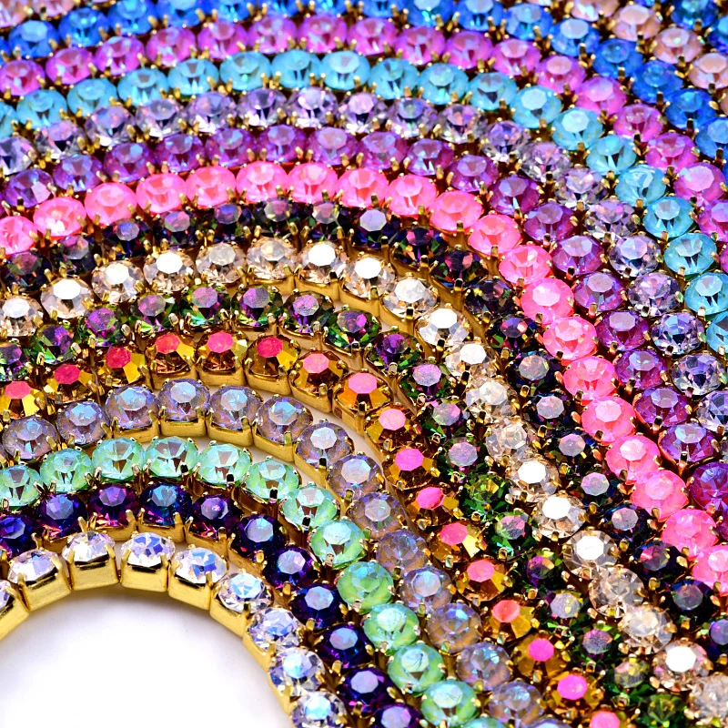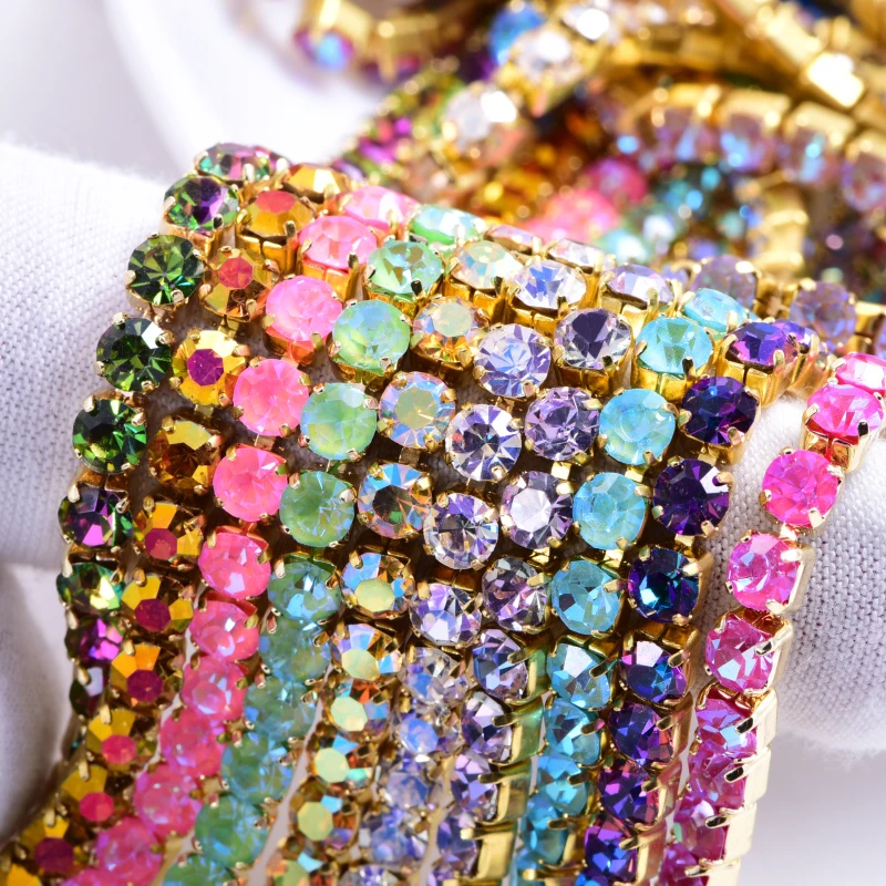 1 ярд новый неоновый стеклянные кристаллы, стразы цепочка закрыть коврик K9 стекло Золотая основа отделка для DIY одежды сумки украшения F0215