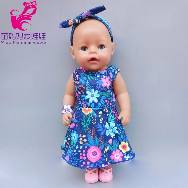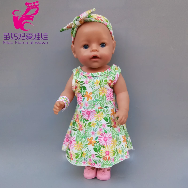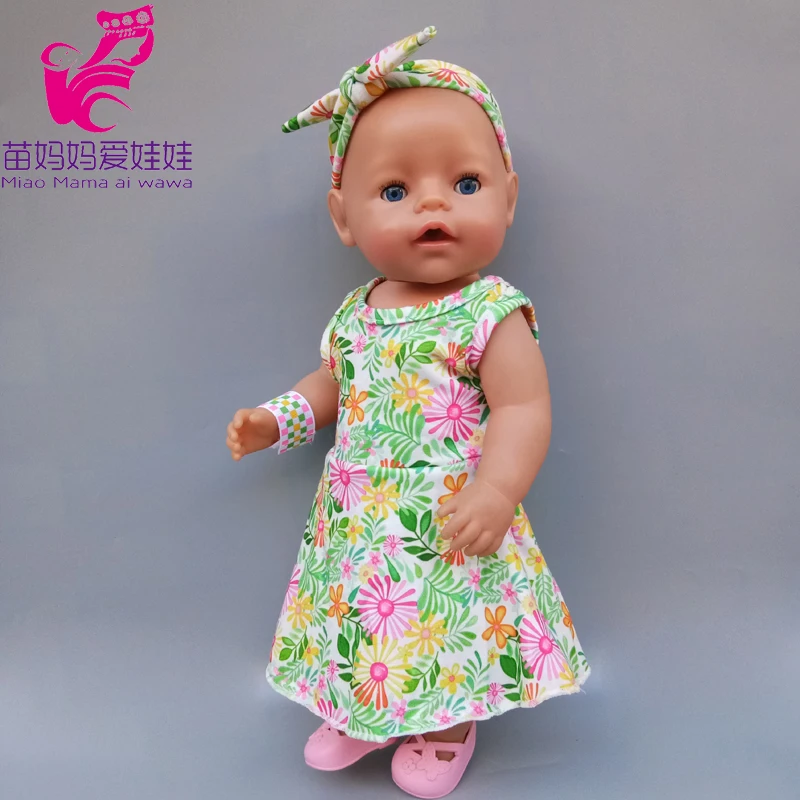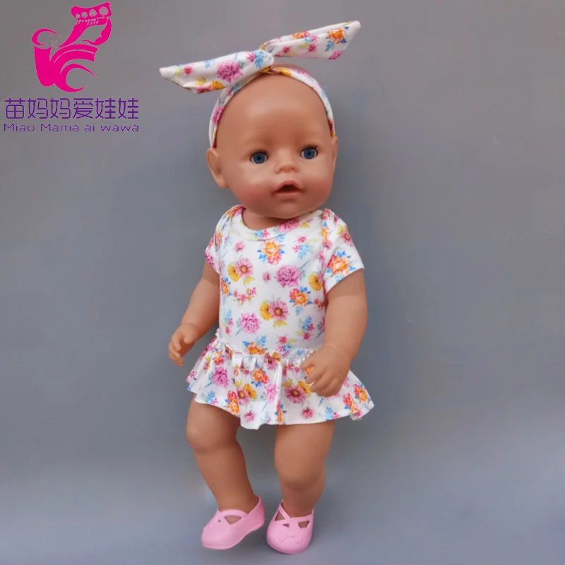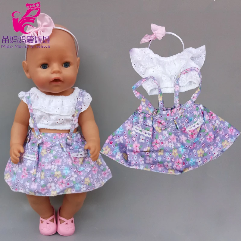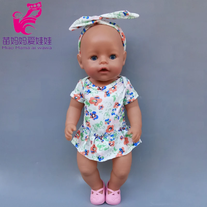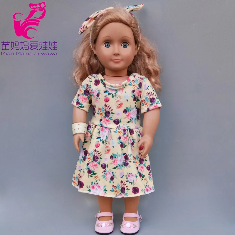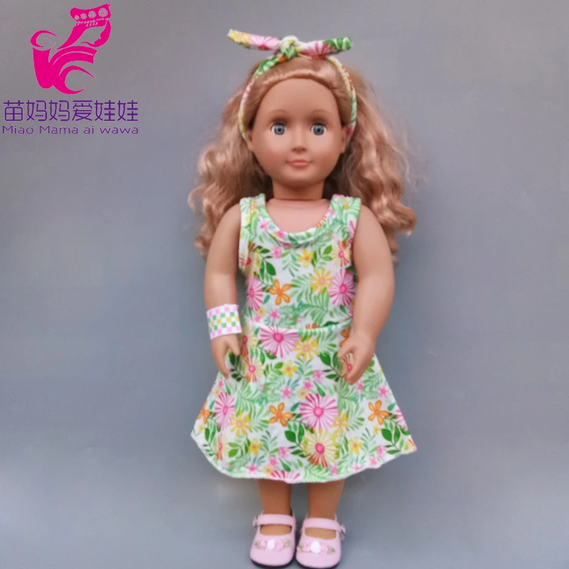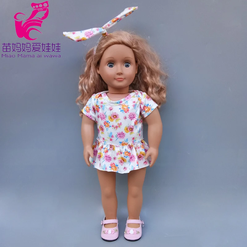 43 см милые весенние Комбинезоны для кукол с цветами и повязкой на голову 18 дюймов Одежда для кукол американского поколения для девочек Базовая рубашка