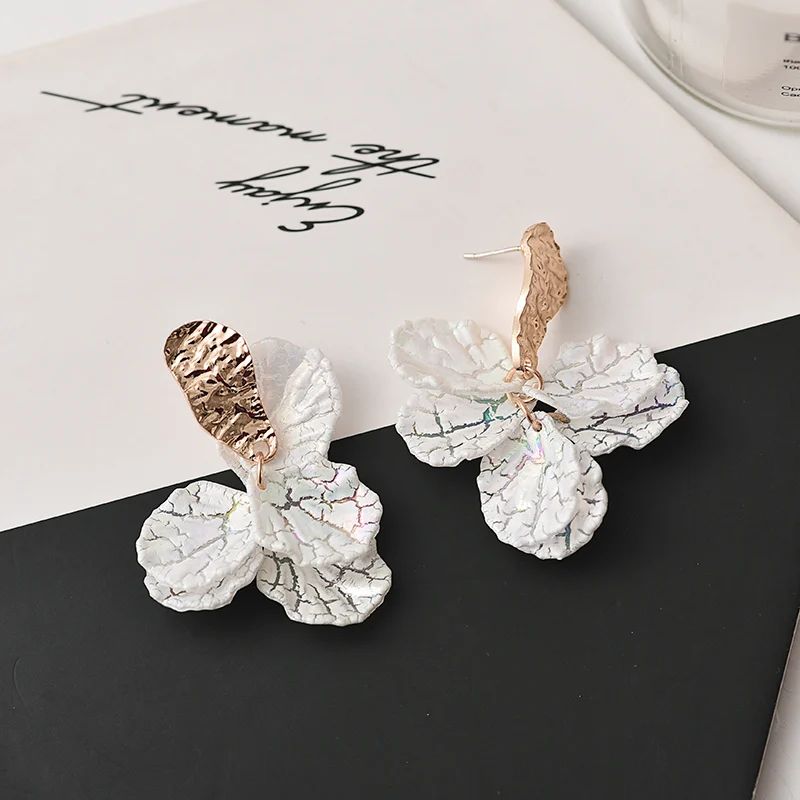 Женские корейские серьги-подвески с белыми ракушками, серьги в форме лепестков с трещинами и цветками, милые нестандартные серьги, модные ювелирные украшения, 2020