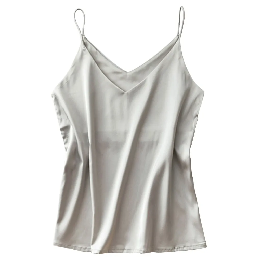 Топ женский атласный с V-образным вырезом, на тонких бретельках