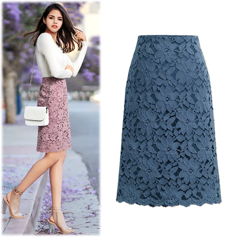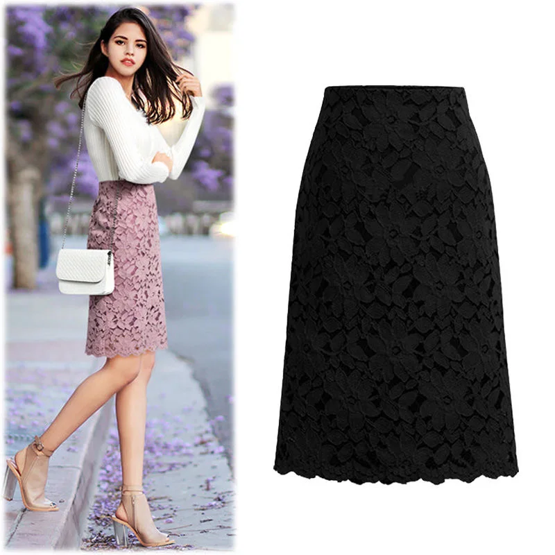 Женская кружевная юбка, юбка-карандаш до колен, офисная, лето размера плюс, 6XL