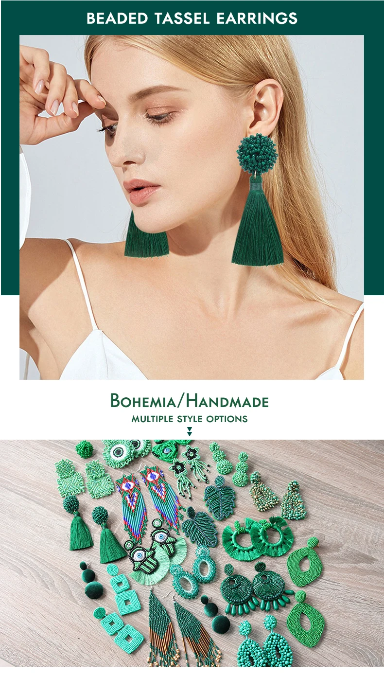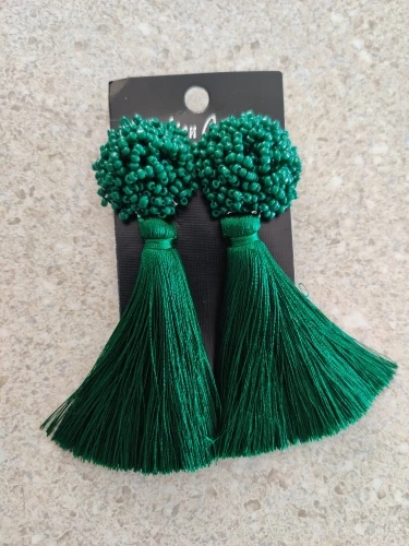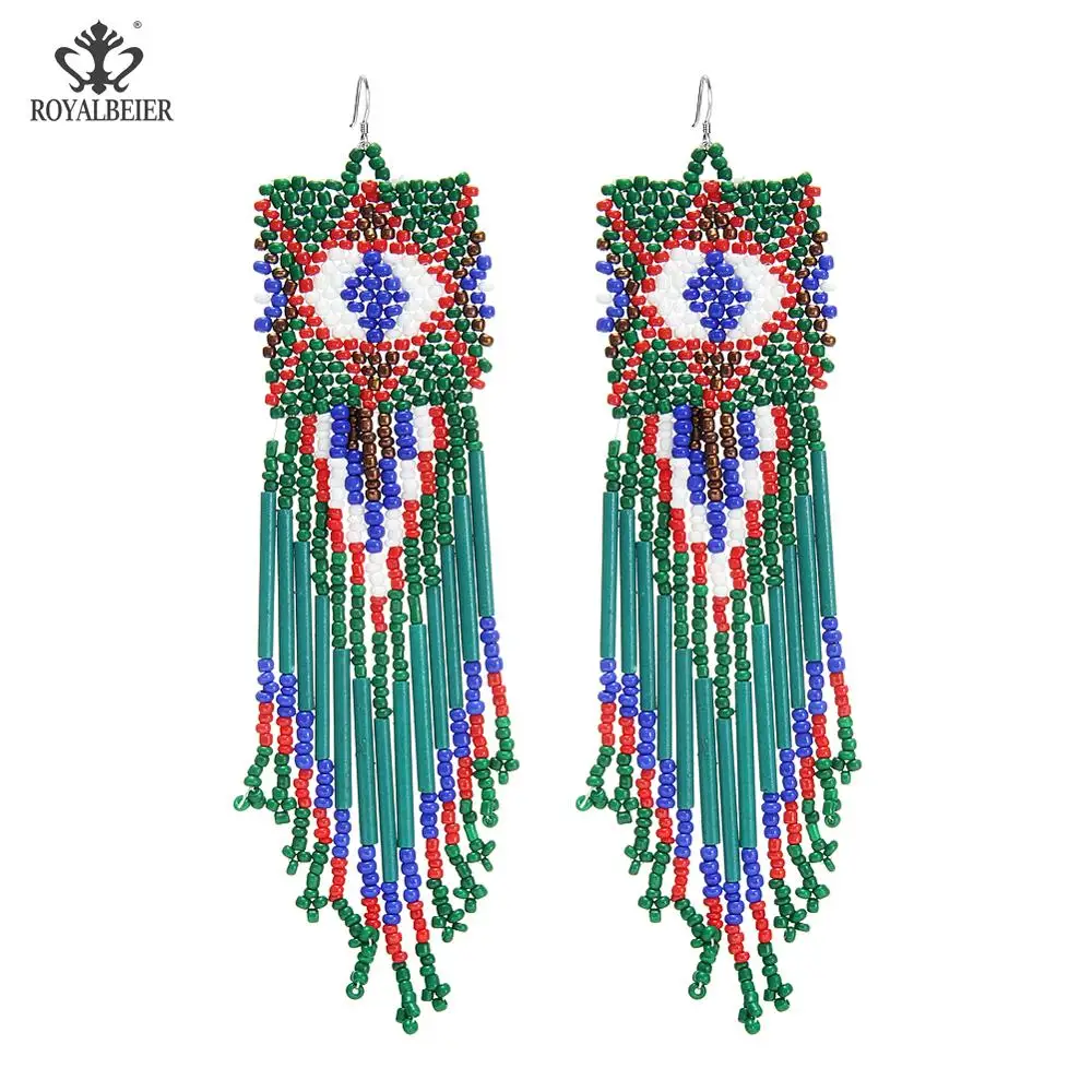 Серьги-подвески женские ROYALBEIER, с зелеными бусинами и бахромой