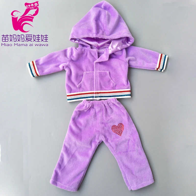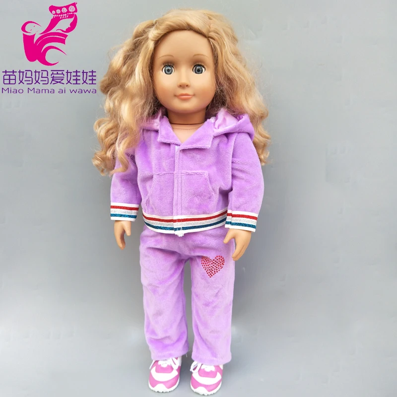 Кукла бархатная для девочек, спортивная одежда фиолетового цвета для отдыха, кукла американского поколения, 43 см, 40 см, 18 дюймов