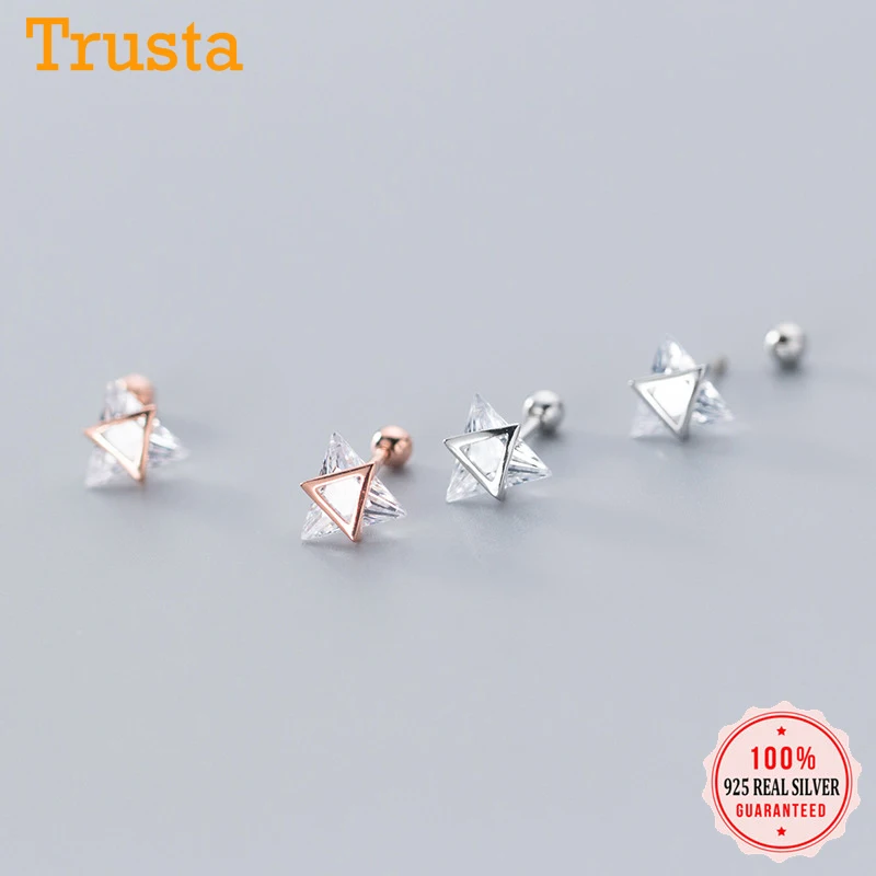 Детские и женские серьги-гвоздики с мерцающими треугольниками trustdave, мини-минималистичное ювелирное изделие из стерлингового серебра 925 пробы, DA592