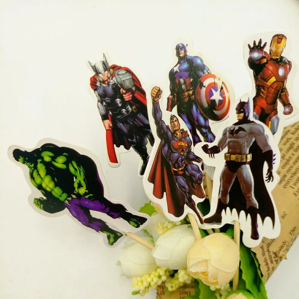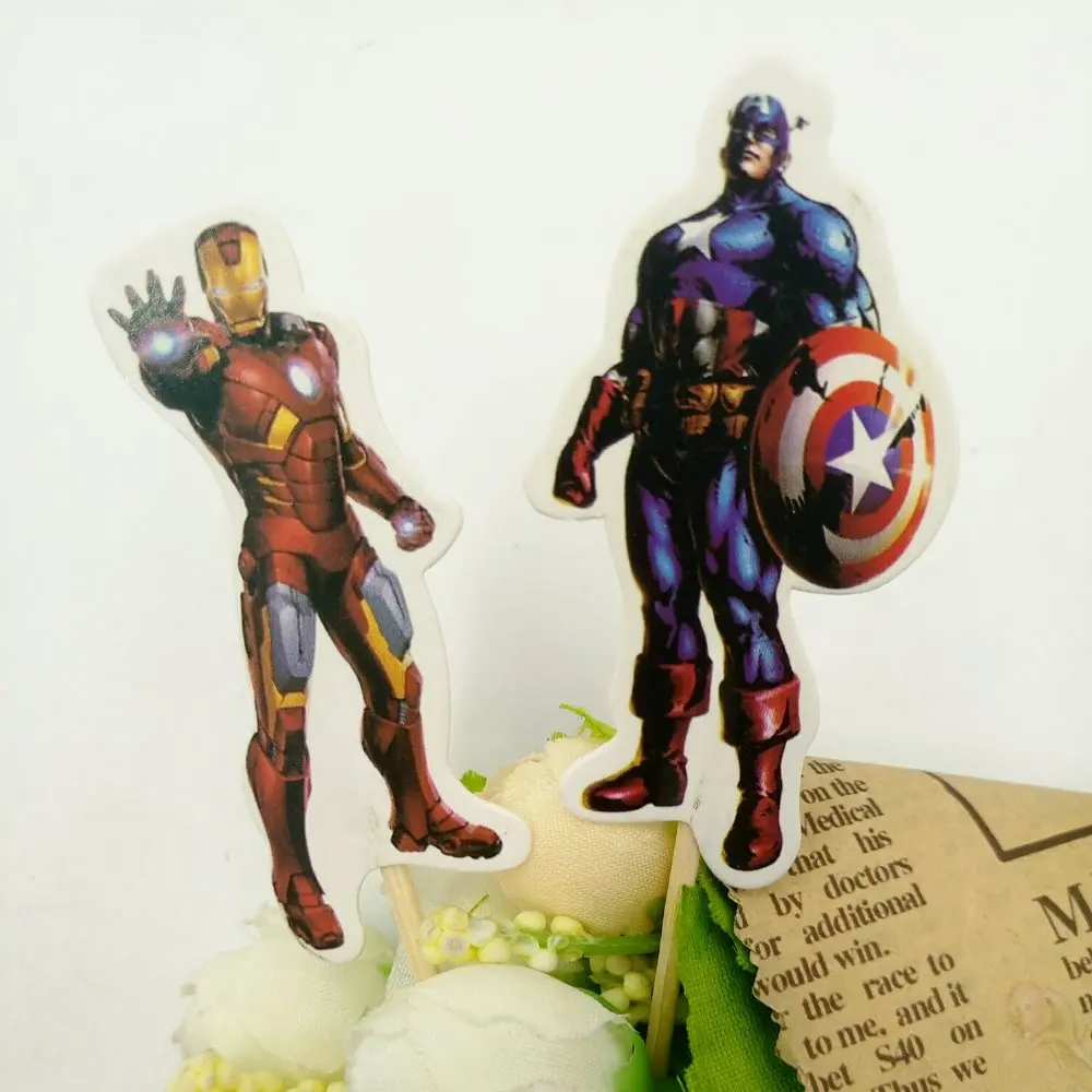24pcs Avenger Cake Dessert topper Card Prod With Picture Cake Decoration Card Cupcake Picks Kid Birthday Party Decoration
