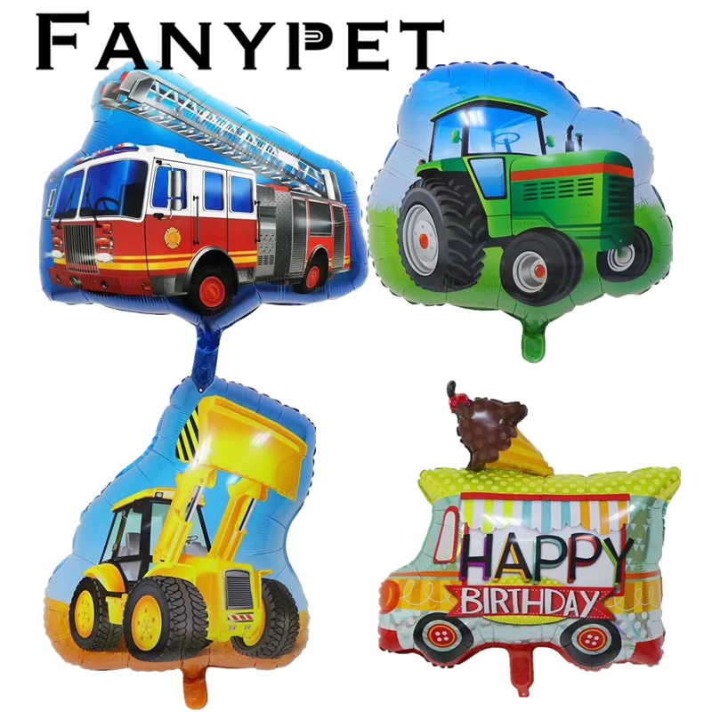 Пожарный двигатель, бульдозер, трактор, строительный погрузчик, фольгированный гелиевый шар, ферма, украшение для дня рождения, 2 шт.
