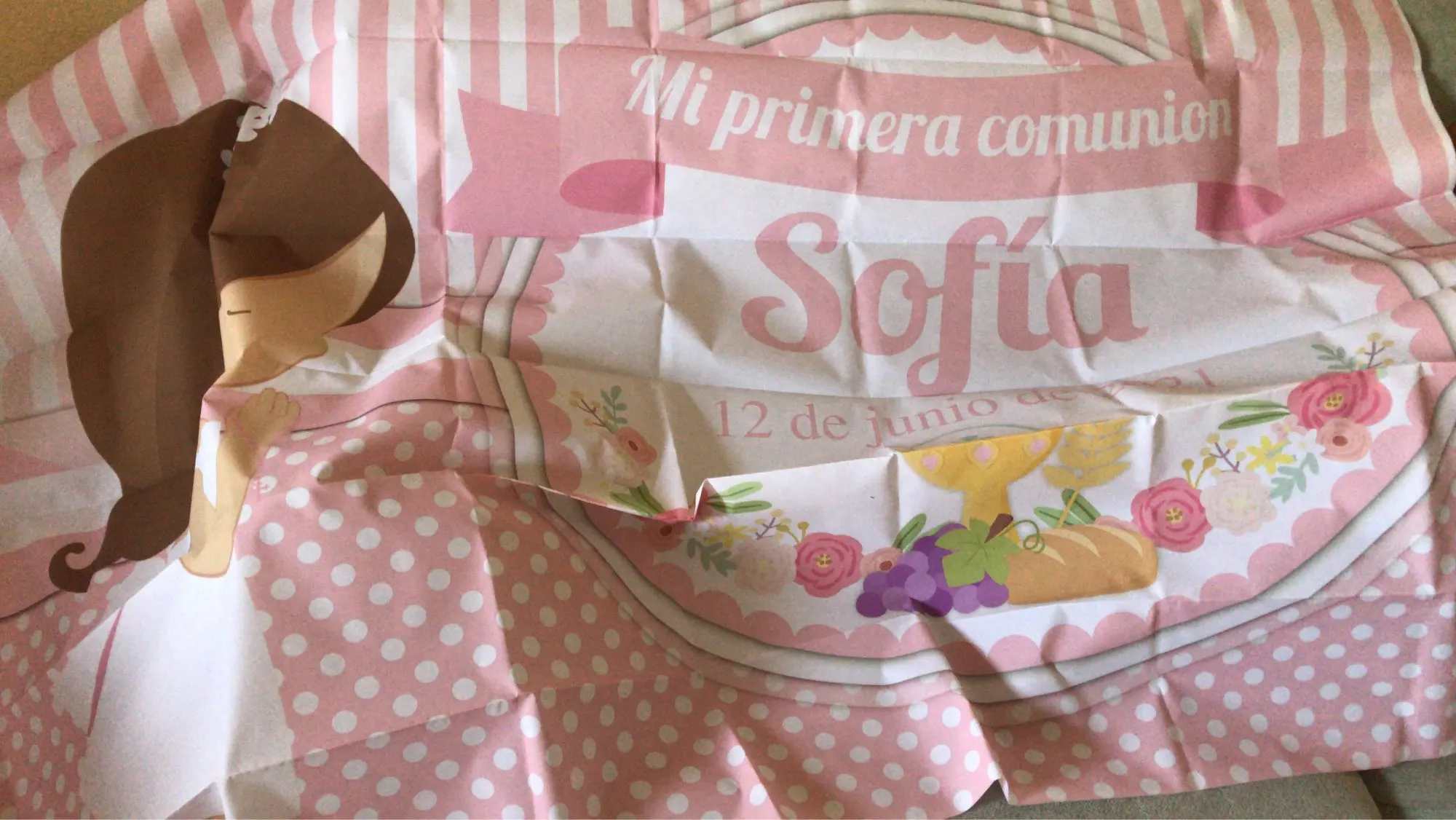 Продавец отрегулировал дизайн, как я уже говорил ему, чтобы он имел цвета, которые любила моя дочь, и был больше похож на ее костюм Communion. Я обязательно повторю, это было красиво. Поддержка должна быть куплена отдельно