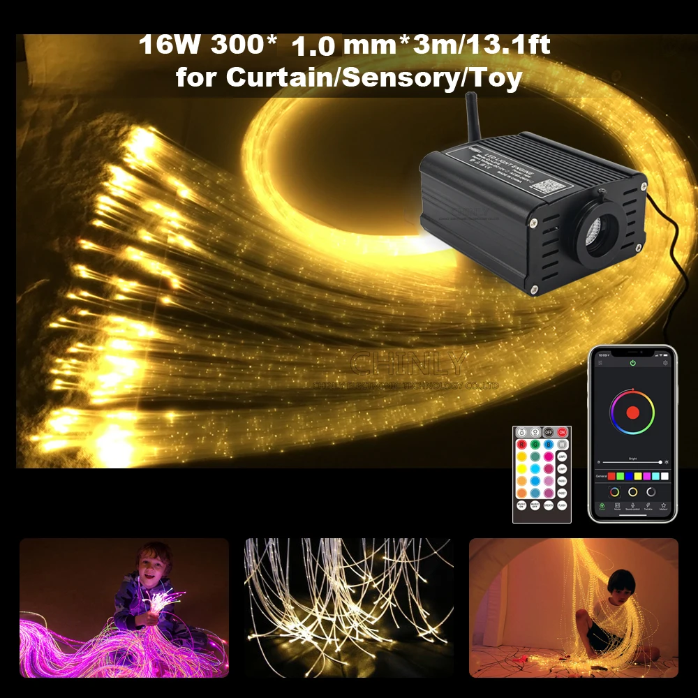 Светильник оптоволоконный, 16 Вт, RGBW, Bluetooth, управление, сверкающие волокна, 300 шт., 3 м, ПММА, звезды, потолочный светильник, игрушки Kds